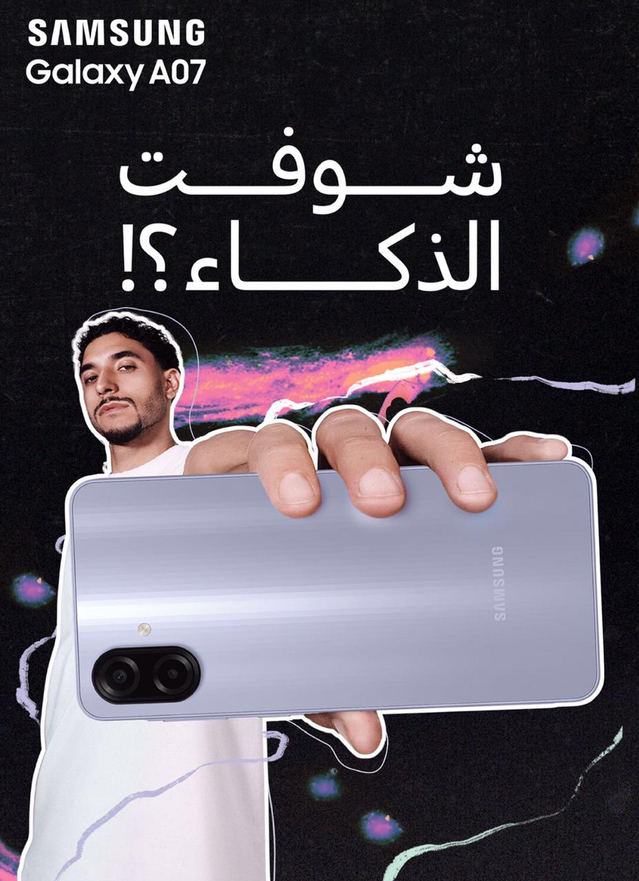 أما هاتف Galaxy A07، فهو يجمع بين التصميم الأيقوني الأنيق والوزن الخفيف، مع شاشة واسعة بقياس 6.7 بوصة ومعدل تحديث 90 هرتز لعرض انسيابي. ويعتمد الهاتف على تقنية Awesome Performance التي توفر تحسينات كبيرة في الأداء، ما ينعكس على تجربة لعب أفضل، وتعدد مهام أسرع، ومشاهدة أكثر سلاسة.