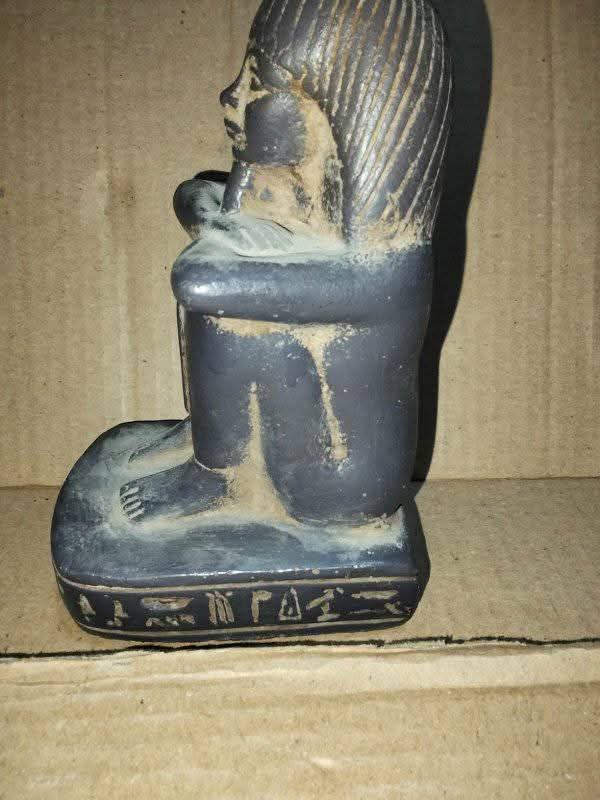 عقب تقنين الإجراءات أمكن ضبطه وبحوزته (533 قطعة أثرية "تماثيل ، تمائم ، عملات معدنية") وبمواجهته إعترف بحيازتها بقصد الإتجار بها، وأضاف بتحصله عليها من أعمال الحفر والتنقيب غير المشروع عن الآثار بأحد المناطق الكائنة بدائرة مركز شرطة ببا ببنى سويف.. وبعرض القطع المضبوطة على الجهات المختصة أفادت بكونها آثرية تعود لعصور قديمة فيما عدا عدد محدود منها يشتبه فى أثريته.