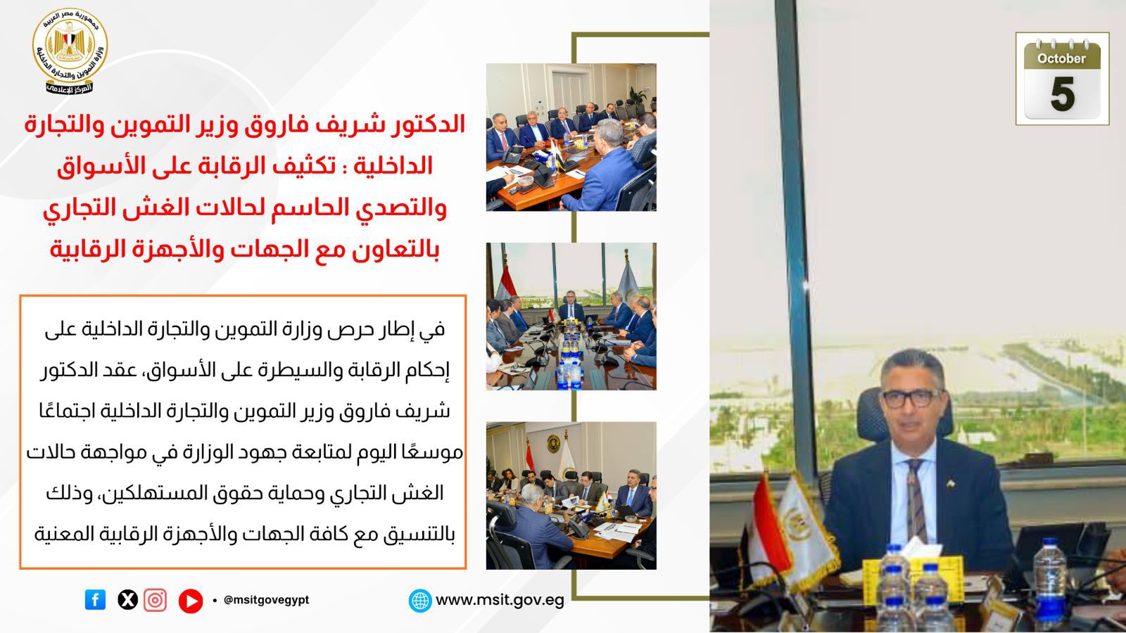 ابرز الفعاليات واللقاءات بوزارة التموين خلال الفترة من ٥ إلى ٩ أكتوبر ٢٠٢٥