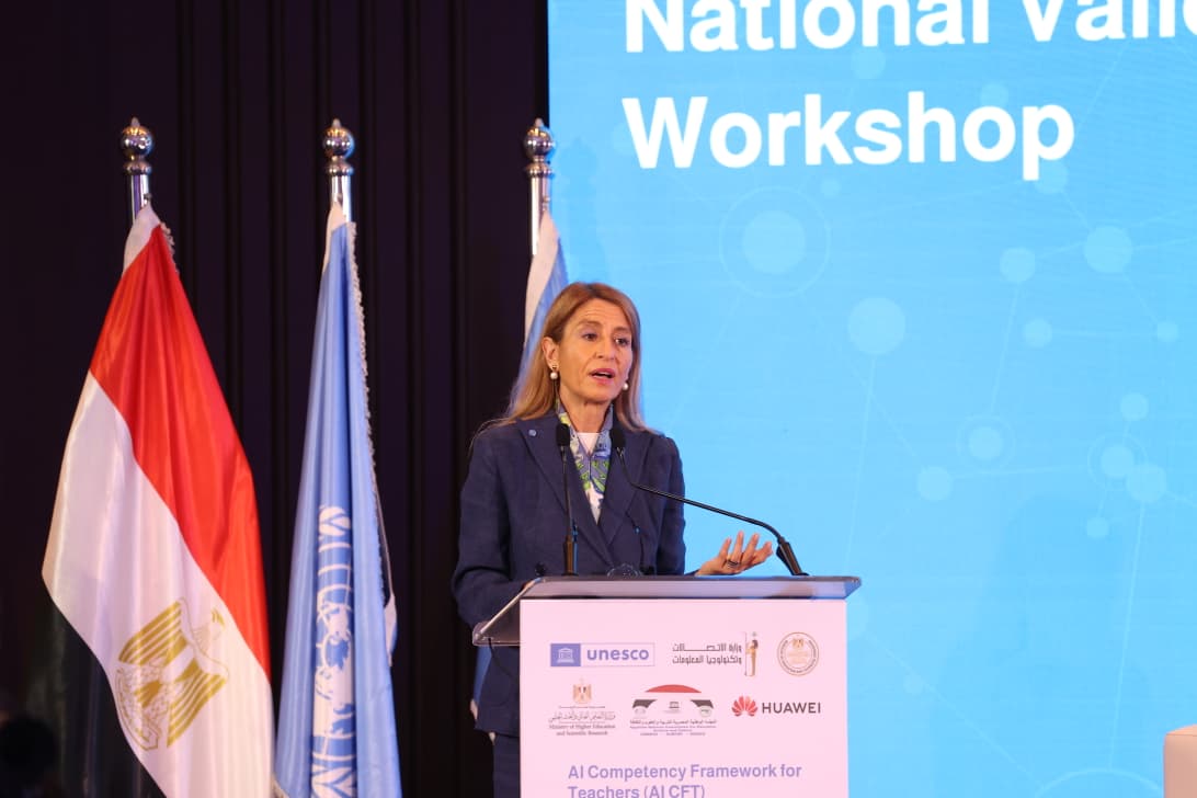 صرحت نوريا سانز مديرة المكتب الإقليمي لليونسكو بالقاهرة بأن الورشة تستهدف مناقشة إطار عمل يضع المعلمين في صميم التحول الرقمي - ليس كمستخدمين للتكنولوجيا، بل كقادة ومبتكرين فاعلين في الاستخدام الأخلاقي والمتمحور حول استخدام الإنسان للذكاء الاصطناعي في التعليم.