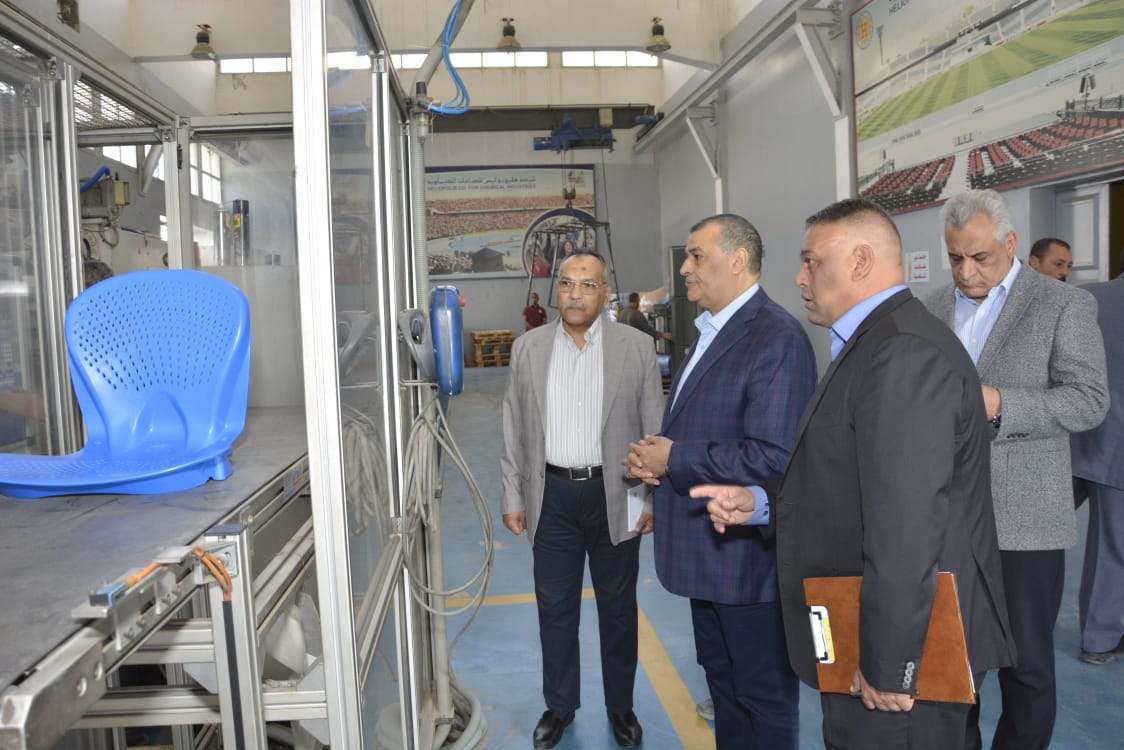 وعقب الوصول للشركة (مصنع 81 الحربي) توجه وزير الدولة للإنتاج الحربي مباشرةً إلى خطوط الإنتاج، حيث استمع إلى ما إستعرضه المهندس محمد عبد المنعم البسيوني رئيس مجلس إدارة الشركة من أوجه التطوير التي تمت بالفترة الأخيرة لزيادة الإنتاجية وتحسين الأداء، وشملت الجولة المرور على قطاع الكاوتش والبلاستيك والذى تأسس عام 1964 ليلبي مطالب القوات المسلحة حيث يدخل الكاوتش والبلاستيك في الصناعات التكميلية للذخائر وقواعد الخراطيش والأقنعة الواقية وعجل الدبابات ولقم الجنزير كما يدخل إنتاجه فى عدد من الصناعات المدنية مثل كراسي الاستادات والتى يتم إنتاجها طبقًا للمواصفات العالمية المعمول بها لدى الاتحاد الدولي لكرة القدم "فيفا"، وعقب ذلك تفقد الوزير مشروع إعادة التمركز بشركة هليوبوليس للصناعات الكيماوية.