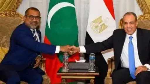 وقدَّم وزير خارجية المالديف الشكر لفضيلة الإمام الأكبر على رعايته لطلاب المالديف الدارسين في الأزهر، مشيرًا إلى أن الدراسة بالأزهر هي حلم لكل أبناء المالديف، مؤكدًا أن خريجي الأزهر في المالديف شاركوا في صناعة نهضة بلادهم، وهم يتمتعون بسمعة طيبة ويشغلون أرفع المناصب الدينية والتعليمية، ونعوِّل عليهم كثيرًا في نشر قيم التسامح والسلم المجتمعي، مضيفًا: "بعض أبناء المالديف تخرَّجوا من جامعة الأزهر، وهم من أمهر الأطباء في بلادنا حاليًّا”.