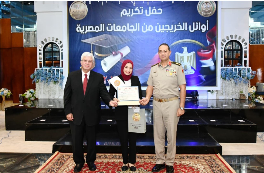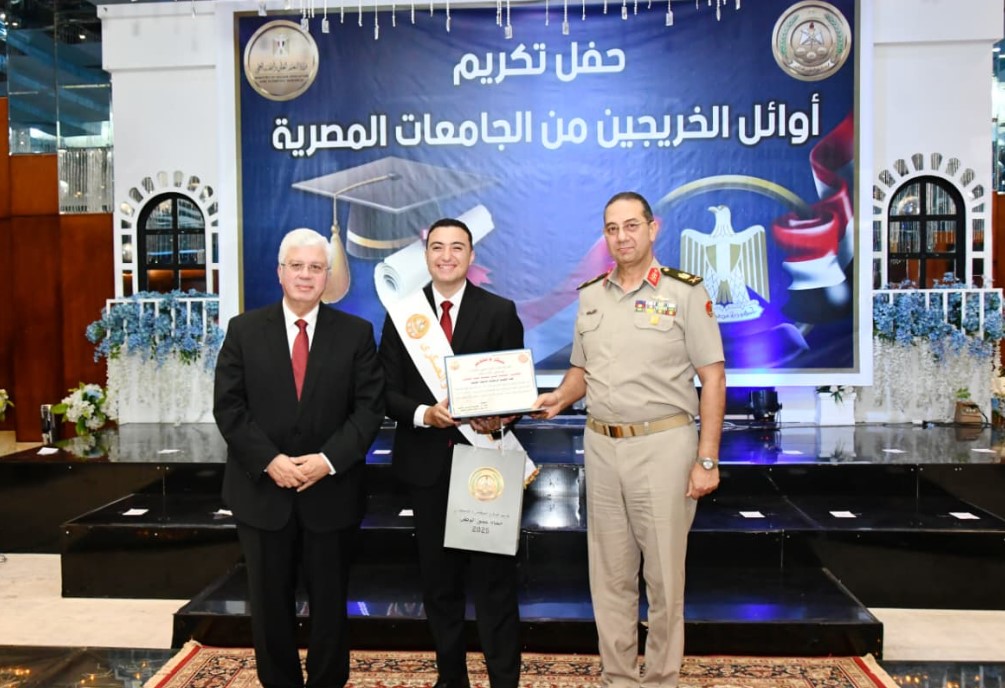 فى إطار حرص القوات المسلحة على تعزيز أوجه التعاون مع كافة الوزارات والمؤسسات بالدولة إيماناً بأهمية التكامل فى الدور المجتمعى والتنسيق المشترك الذى يعود بالنفع على الوطن بكافة المجالات ، نظمت قوات الدفاع الشعبى والعسكرى بالتعاون مع وزارة التعليم العالى والبحث العلمى إحتفالية لتكريم أوائل الطلبة من خريجى الجامعات المصرية للعام الدراسى الماضى تقديراً لتميزهم العلمى وحرصهم على التفوق خلال مختلف المراحل الدراسية , وذلك بحضور الدكتور أيمن عاشور وزير التعليم العالى والبحث العلمى .