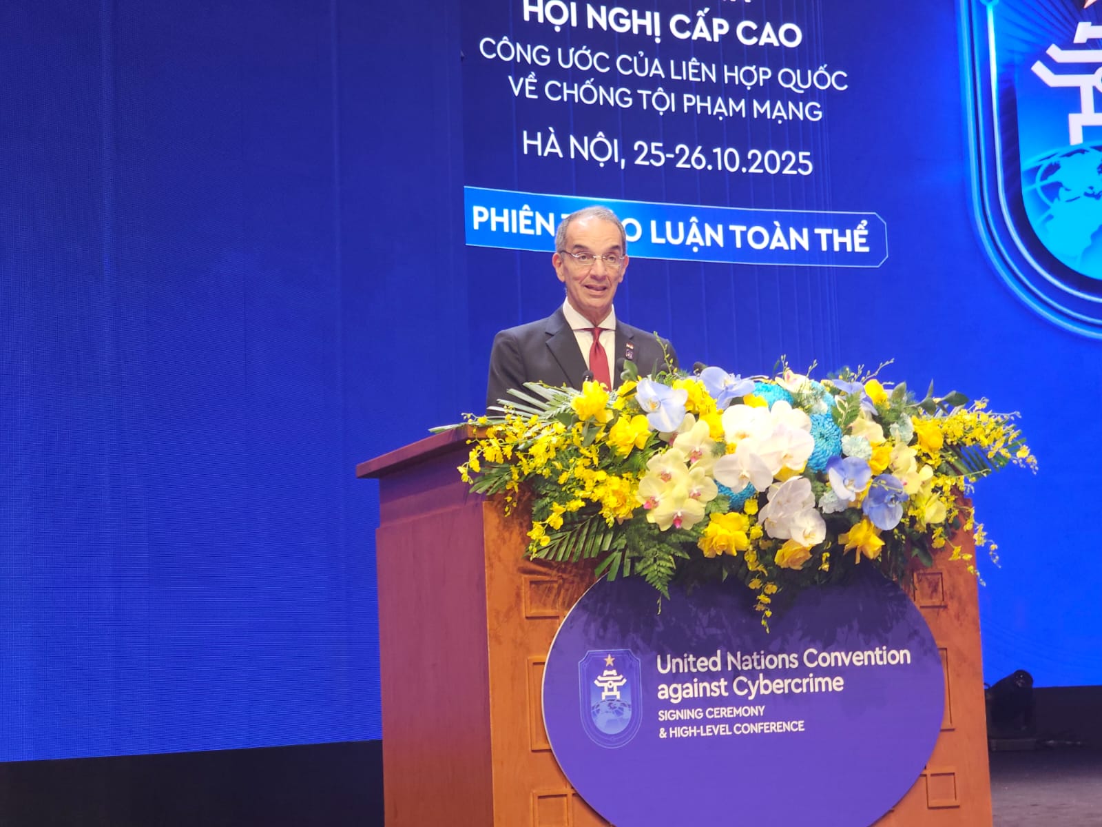 وقعت مصر على اتفاقية الأمم المتحدة لمكافحة الجريمة السيبرانية خلال فعاليات المؤتمر الذى استضافته العاصمة الفيتنامية هانوى؛ حيث وقي الدكتور عمرو طلعت وزير الاتصالات وتكنولوجيا المعلومات، رئيس وفد مصر رفيع المستوى المشارك فى مراسم التوقيع التى شهدها لوونج كونج رئيس جمهورية فيتنام الاشتراكية، وأنطونيو جوتيريش الأمين العام للأمم المتحدة، والدكتورة غادة والى المديرة التنفيذية لمكتب الأمم المتحدة المعنى بالمخدرات والجريمة، والسفير هانى مصطفى سفير جمهورية مصر العربية بجمهورية فيتنام، ورؤساء وفود الدول المشاركة في المؤتمر.