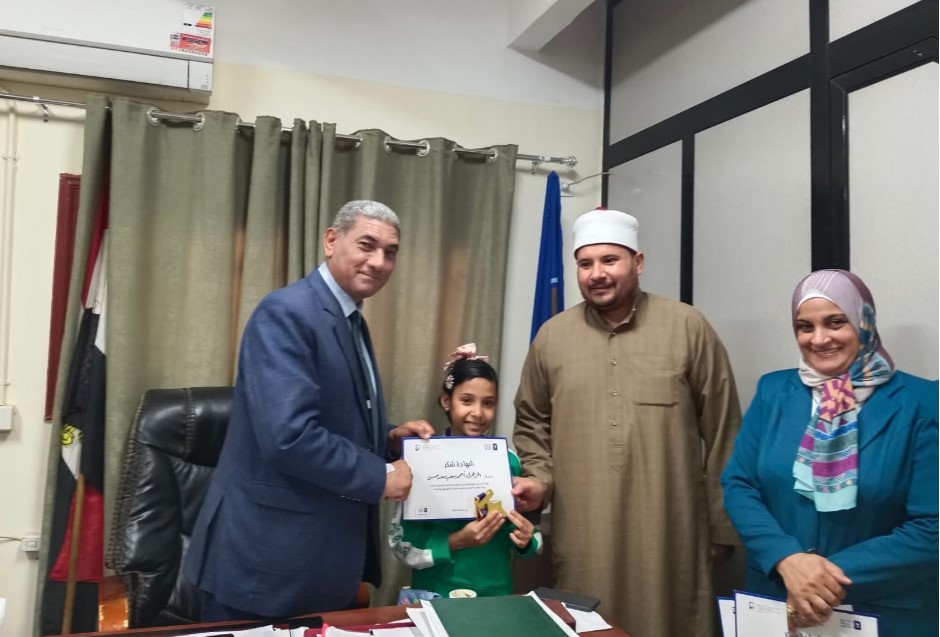 الطلاب وهم : أحمد سامى محمد الصاوى مدرسة عثمان بن عفان صباحى والزهراء أحمد سعيد سعد حسن طلعت حرب المسائية وتالا خالد حلمى مدرسة مدرسة مستقبل بنات وملك السيد جمال محمد مستقبل بنات لوسيندا أحمد الشافعى مدرسة الاباءالفرنسيسكان ثانيا: المرحلة الاعدادية وعمر محمد سمير كامل مدرسة المستقبل بنين.