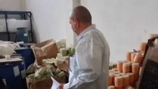 أكد الدكتور إيهاب شكرى، مدير عام الطب البيطرى بكفرالشيخ، أن الحملة تمكنت من تحرير 6 محاضر وضبط طن و 625 كيلو جرام سمان مجمد بدون بيانات ومذبوح خارج المجازر المرخص لها قانونا، و46 كيلو جرام لحوم بلدية مذبوحة خارج المجازر الحكومية بإجمالى وزن مضبوطات طن و671 كيلو، وتحررت المحاضر اللازمة وجاري العرض على النيابة العامة.