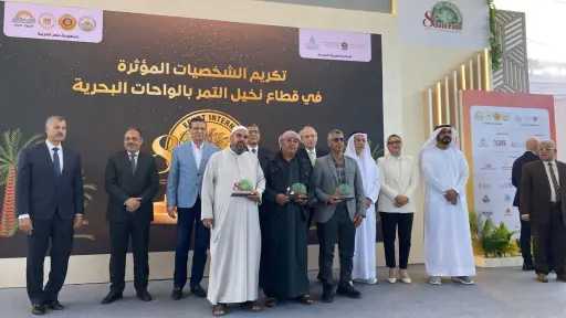 كما قام وزير الزراعة ومحافظ الجيزة ومرافقوهما بتكريم الفائزين بجوائز الدورة الثامنة لمسابقة التمور المصرية، ومنحهم درع محافظة الجيزة تقديرًا لإسهاماتهم المتميزة في تطوير صناعة التمور المصرية.
