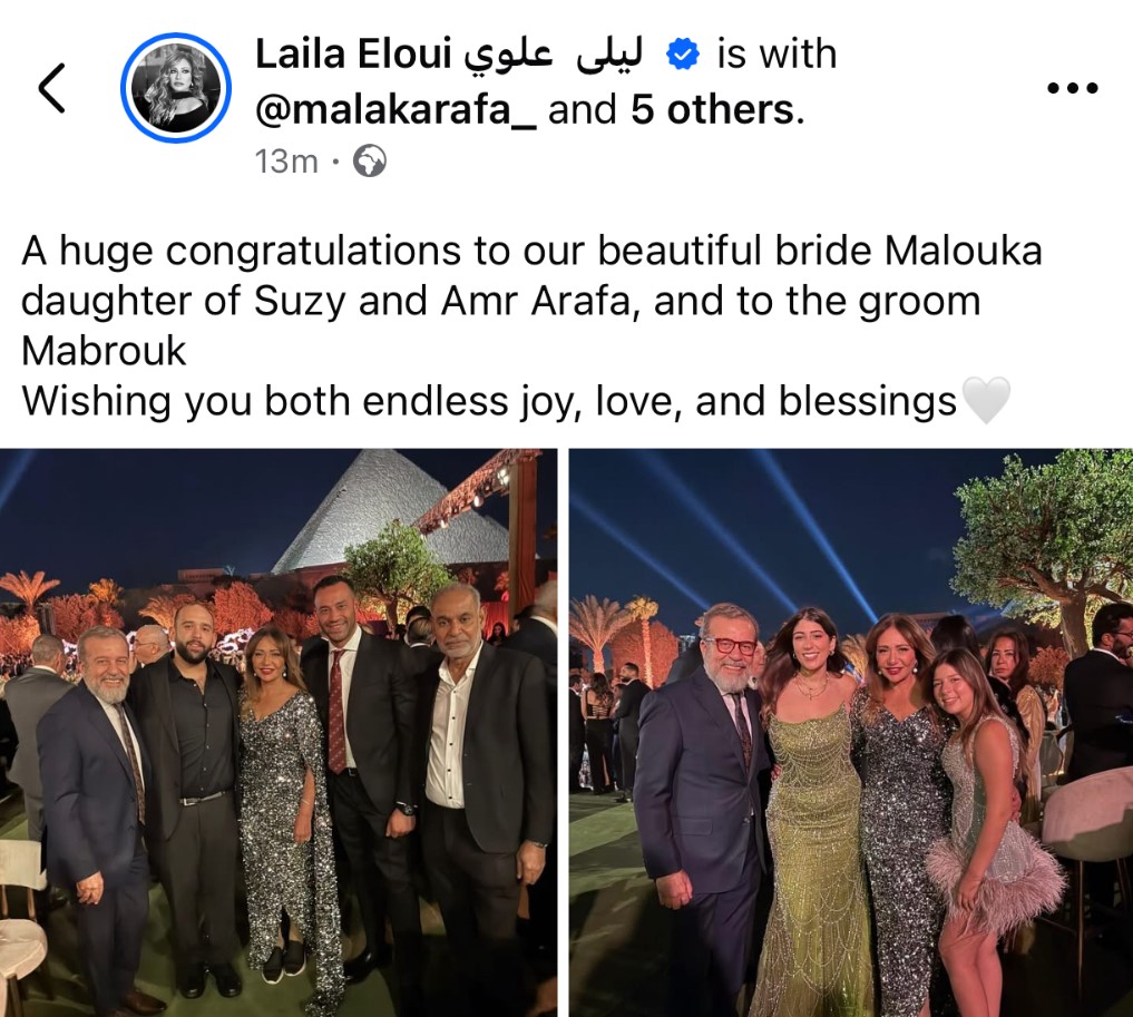 ونشرت ليلى علوي الصور على حسابها الشخصي بموقع فيسبوك وعلقت عليها قائلة: "ألف مبروك للعروسة ملوكا بنت سوزي وعمرو عرفة، وللعريس مبروك. نتمنى لكم حياة مليئة بالفرح، الحب، والبركة"