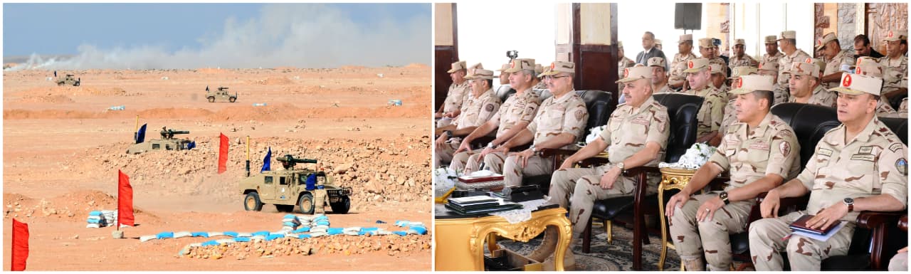 وزير الدفاع يشهد تنفيذ المرحلة الرئيسية للمشروع التكتيكى بجنود بالذخيرة الحية لإحدى وحدات المنطقة الغربية العسكرية..صور