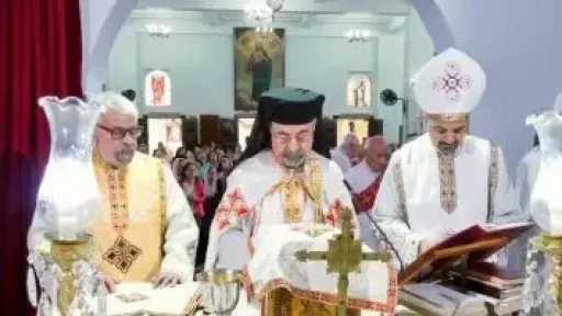 البطريرك الأنبا إبراهيم إسحق يهنئ المونسينيور يوأنس لحظي