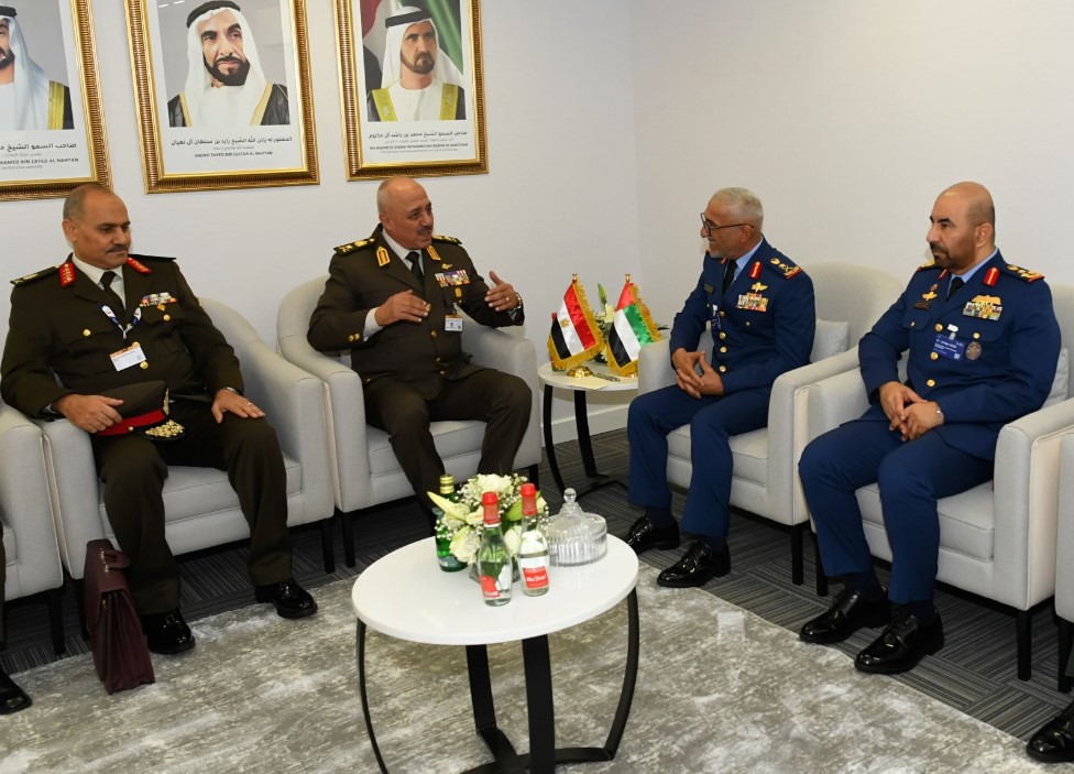 وعلى هامش فعاليات المعرض إلتقى الفريق أحمد خليفة رئيس أركان حرب القوات المسلحة الفريق الركن مهندس عيسى سيف محمـد المزروعى رئيس أركان القوات المسلحة الإماراتية وتناول اللقاء مناقشة عدد من الموضوعات ذات الإهتمام المشترك وسبل تعزيز علاقات التعاون العسكرى بين القوات المسلحة المصرية والإماراتية .