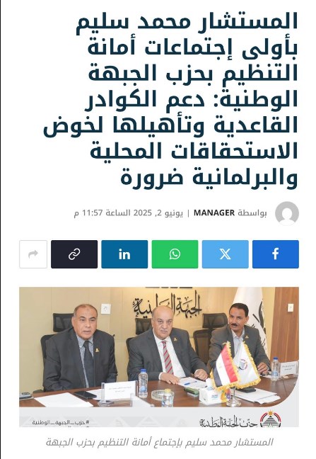 وأوضح البيان أن الصفحة الرسمية لحزب الجبهة الوطنية كانت قد نشرت بتاريخ 26 مارس قرارات تنظيمية شملت تعيين المستشار محمد مصطفى سليم ضمن أمناء مساعدي التنظيم، مع تكليفه بمتابعة محافظات جنوب الصعيد، وهي معلومات موثقة بالصور والمنشورات الرسمية.