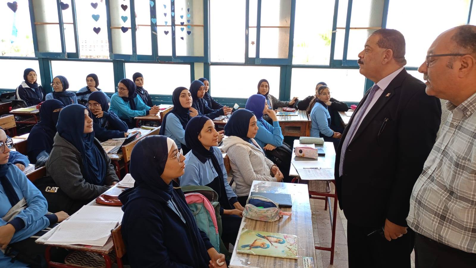 فتحى يفاجئ مدرسة الطحاوى الثانوية بنات للوقوف على انظباطها