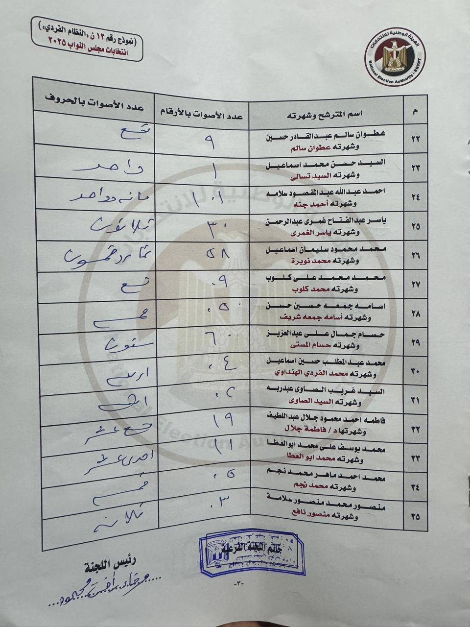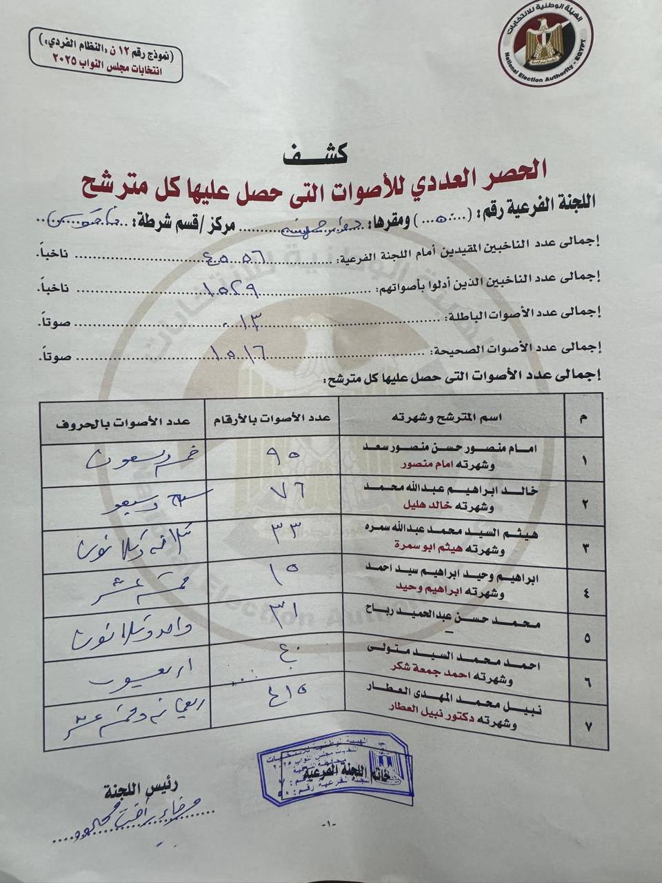 الامر لم يقف عند ذلك ولكن هناك ايضا محاضر بلا توقيع ولا ختم وهو مايعد خطأ قانوني ينسف صلاحية المستند من أساسه ويضع علامات استفهام كثيرة حول كيفية اعتماد نتيجته التى لا تتفق مع الوضع الصحيح او حتى ان اتفقت كما ان وضع أرقام دون كتابتها باللغة العربيىة يُسهل “النسخ واللصق” والتعديل أثناء التجميع النهائي دون اكتشاف سريع.