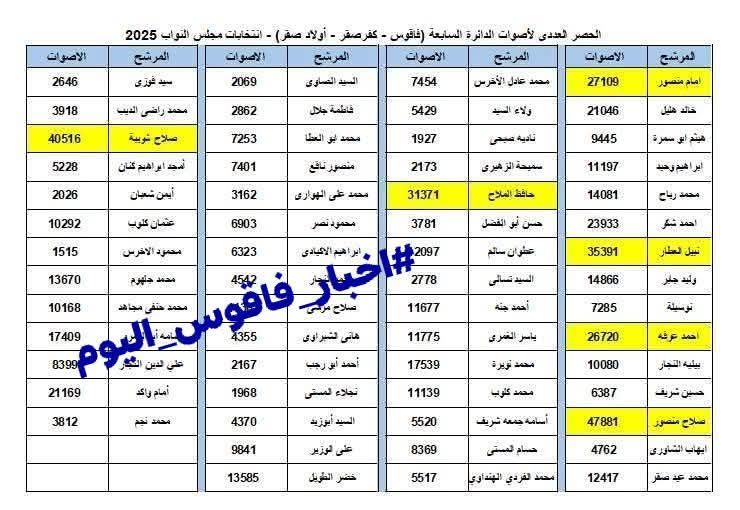 تقدم المرشحون بالدائرة السابعة والتى تضم فاقوس وكفر صقر واولاد صقر بطعون بالجملة ومستندات صادمة تكشف عوارا انتخابيا فادحا يُهدد ببطلان النتائج وإعادة الانتخابات كاملة وذلك في واحدة من أعقد المشاهد الانتخابية في تاريخ محافظة الشرقية حيث انفجرت أزمة كبرى داخل الدائرة السابعة التى تمثل فاقوس و كفر صقر و أولاد صقر بعد أن تقدم المرشح خالد هليل ومعه عدد من المرشحين والمواطنين بسلسلة طعون رسمية إلى الهيئة الوطنية للانتخابات، متهمين العملية الانتخابية بـ«التزوير الواسع» و«التلاعب الممنهج» و«الإخلال الجسيم بضمانات النزاهة».