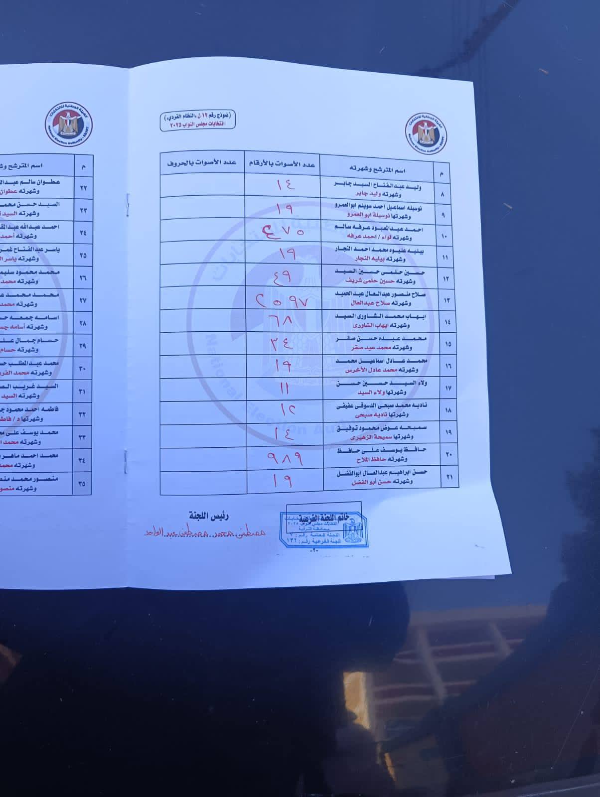 وثائق مخيفة حيث تحتوى أرقام تتجاوز عدد الناخبين ومحاضر بلا توقيعات وكذلك الملف الذي قُدم للهيئة لم يكن مجرد سرد شفهي بل حمل مستندات تُوصف بأنها «الأخطر منذ سنوات»أبرزها فى اللجنة 82 بفاقوس محاضر الفرز بها سجلت أصواتا لمرشح معين تفوق عدد من حضروا للتصويت فعليا وذلك رقم غير قابل للتفسير إلا بوجود خطأ جسيم أو تدخل غير مشروع وكذلك لجنة ناطورة بكفر صقر بنفس الدائرة وهى فاقوس بالاضافة الى وجود محضر أول يثبت إجمالي الأصوات الصحيحة 2357 صوتا لكن محضرا آخر منح أحد المرشحين 2597 صوتًا منفردا وهذا معناة أن مرشحا واحدا حصل على أصوات تزيد عن إجمالي الأصوات الصحيحة كلها وهو مايسير الكثير من التساؤلات