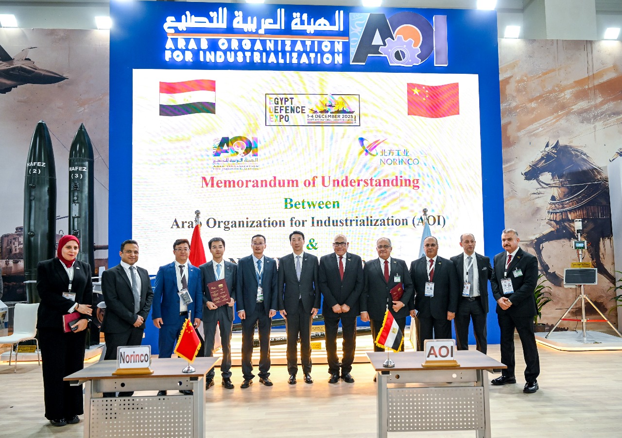 وفي سياق هذا وفعاليات اليوم الأول للمشاركة الناجحة للهيئة العربية للتصنيع في معرض إيديكس الدولي للصناعات الدفاعية EDEX 2025تم توقيع مذكرة للتفاهم بين مصنع الطائرات أحد مصانع الهيئة العربية للتصنيع وشركة نورينكو الصينية Norinco.