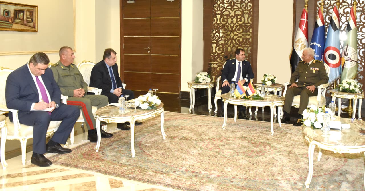 إلتقى الفريق أول عبد المجيد صقر القائد العام للقوات المسلحة وزير الدفاع والإنتاج الحربى السيد رامو كلود بيرو وزير الدفاع الوطنى لجمهورية أفريقيا الوسطى ، كما إلتقى بالسيد سورين بابيكيان وزير دفاع أرمينيا ، والسيد ساديو كمارا وزير الدفاع الوطنى والمحاربين القدماء لدولة مالى ، حيث تناولت اللقاءات آخر المستجدات على الساحتين الإقليمية والدولية ، كما تم مناقشة عدداً من الموضوعات ذات الإهتمام المشترك فى إطار مجالات التعاون العسكرى ونقل وتبادل الخبرات .