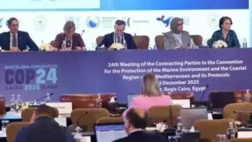 شهدت جلسة وزارية رفيعة المستوى لمؤتمر الأطراف الرابع والعشرين لاتفاقية حماية بيئة البحر المتوسط من التلوث ( إتفاقية برشلونة) COP24، مناقشات حول الاقتصاد الأزرق المستدام من أجل متوسط ، كفرصة للتواصل والتعاون بين دول المتوسط لمواجهة التحديات مثل آثار تغير المناخ والتلوث في قطاعات مختلفة كالزراعة والصيد والشحن، بما يحقق التنمية المستدامة للإقليم ورفاهيته، في ضوء الأطر الاقليمية وآليات السوق وأفضل الممارسات لتحقيق التوازن بين التنمية الاقتصادية وحماية النظم البيئية، وإشراك الشباب والمرأة والقطاع الخاص والمجتمع المدني.
