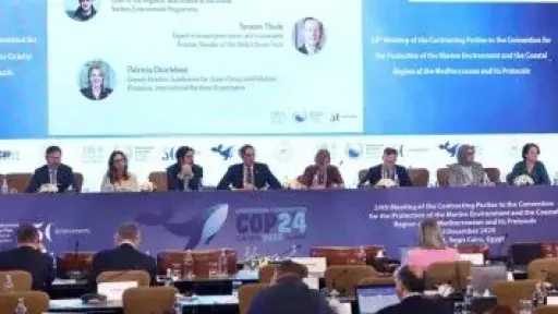 وطالب السفير بيتر طومسون المبعوث الرسمي للأمين العام للأمم المتحدة لشئون المحيطات، خلال كلمته فى افتتاح جلسة الشق الوزارى للمؤتمر الأطراف الرابع والعشرين لاتفاقية حماية بيئة البحر المتوسط من التلوث ( إتفاقية برشلونة) COP24، اليوم، بضرورة العمل الدولى والإقليمى من خلال الإتفاقيات الدولية المختلفة والمؤتمرات والأستناد إلى الأدلة العلمية ، والعمل على الوفاء بتلك الإلتزامات الدولية ، مُشدداً على ضرورة مضاعفة الجهود نحو التحول الأخضر والإقتصاد الأزرق والدائري، لأن مستقبل الإنسانية والأجيال القادمة مرتبط بصحة البحار والمحيطات.