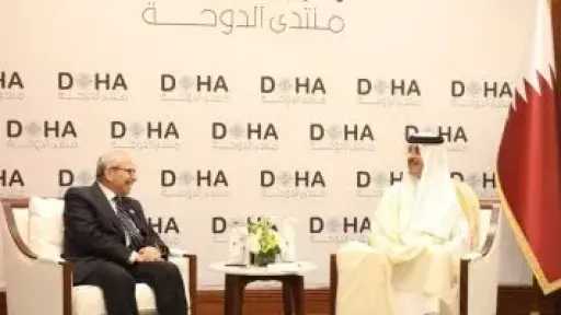 كما التقى رئيس مجلس الوزراء اللبنانى الدكتور نواف سلام ونائب رئيس مجلس الوزراء الدكتور طارق متري بأمير دولة قطر الشيخ تميم بن حمد آل ثاني، وذلك عقب الجلسة الافتتاحية لمنتدى الدوحة وخلال اللقاء أكد أمير قطر استمرار دولة قطر في دعم لبنان سياسيًا واقتصاديًا، مشيرًا إلى أن الدوحة ستعلن قريبًا عن حزمة جديدة من مشاريع الدعم المخصصة للبنان.