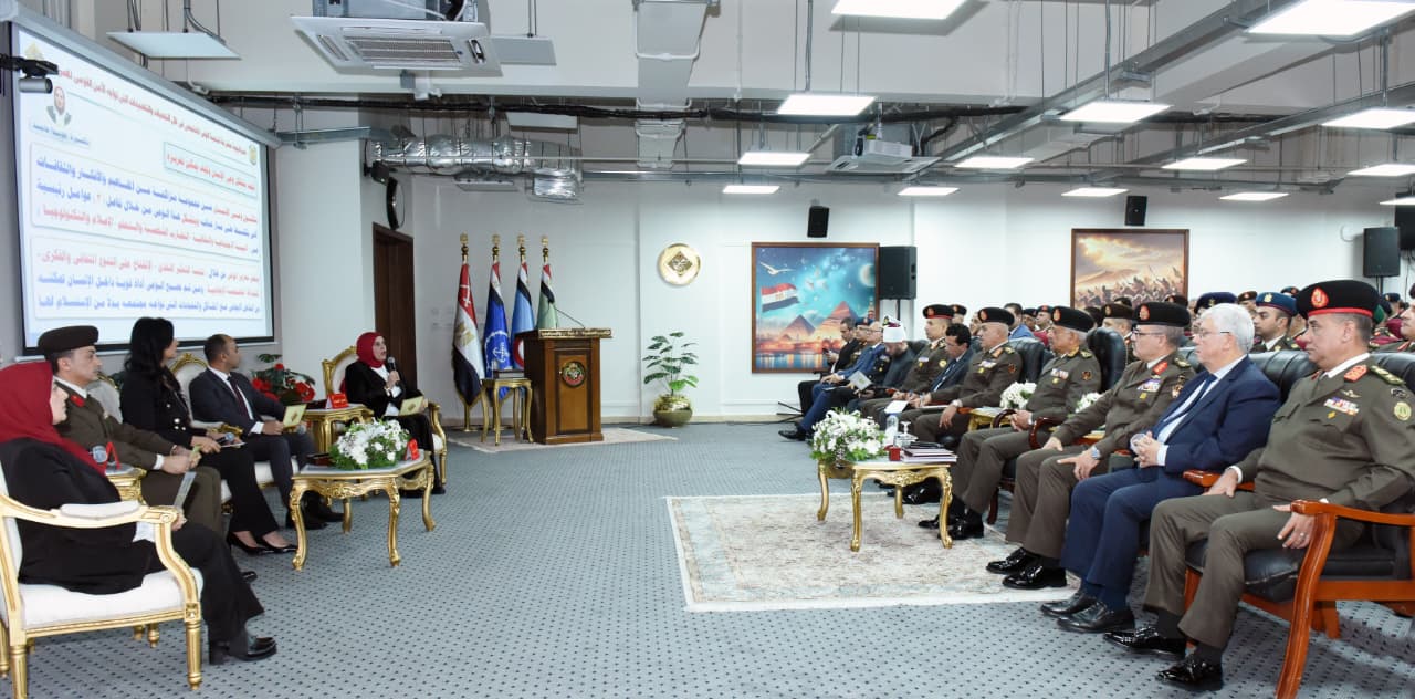 وما تناوله من دراسات تسهم فى وضع إستراتيجيات مدروسة ومتعددة الأبعاد للإرتقاء بالمستوى الفكرى وفقاً لأسس وطنية راسخة فى ضوء التهديدات التى قد تؤثر على ركائز الأمن القومى المصرى ، كما أثنى القائد العام للقوات المسلحة على الدور الذى تقوم به الأكاديمية فى تأهيل الدارسين العسكريين والمدنيين بما يمكنهم من الوفاء بالمهام والمسئوليات التى يكلفون بها بكفاءة وإقتدار.