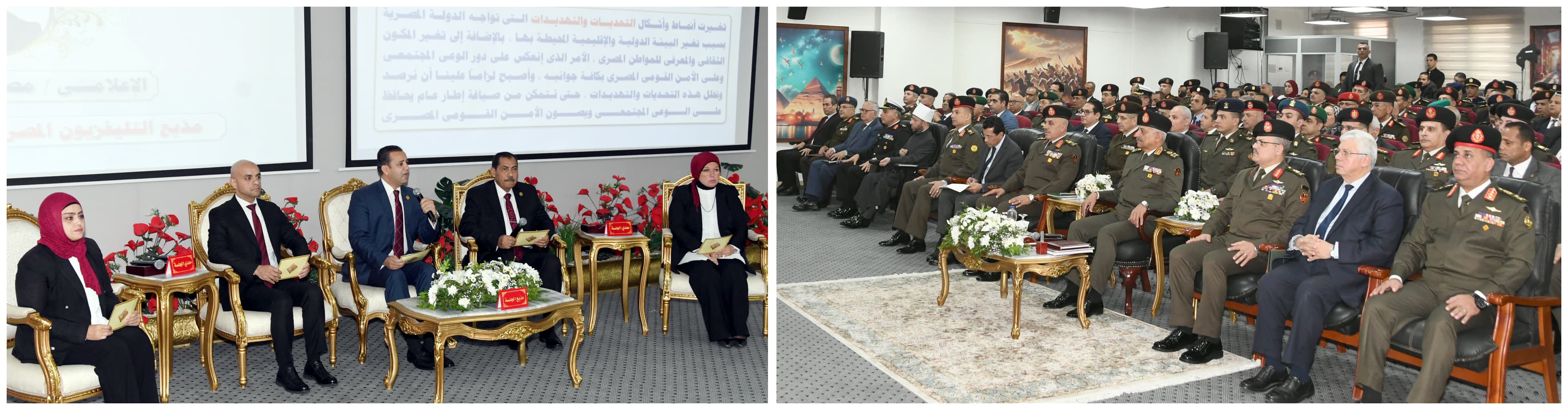 كما شارك وزراء الشباب والرياضة والتعليم العالى والبحث العلمى والأوقاف والتربية والتعليم والتعليم الفنى ، ورئيس الهيئة الوطنية للإعلام ، فى التعقيب على موضوع البحث وتقديم الرؤية التى تسهم فى الإرتقاء بمستوى الوعى فى ضوء التحديات المرتبطة بالأمن القومى المصرى إيماناً بأن الوعى الصحيح هو الحصن الذى يحمى الأوطان من كافة المخاطر.