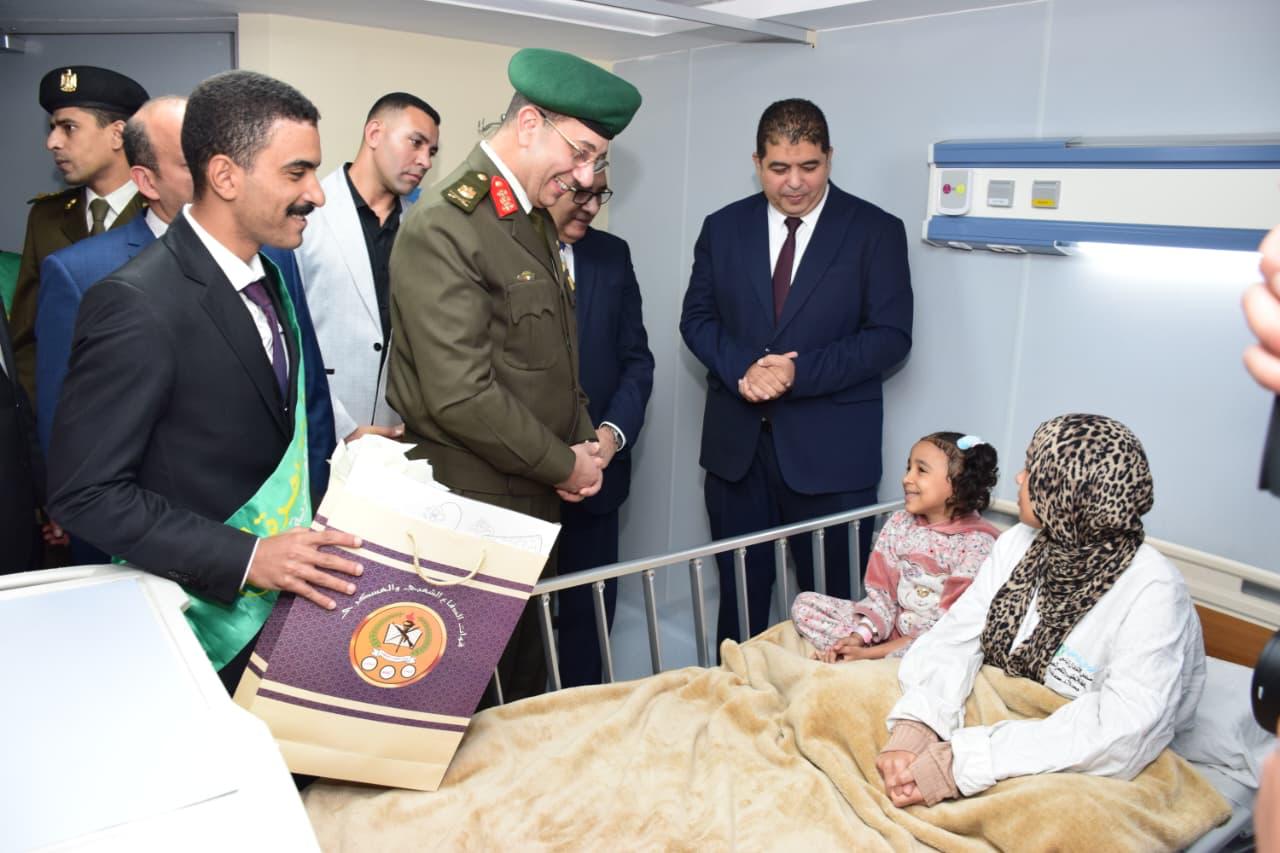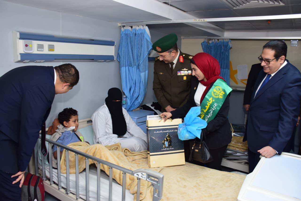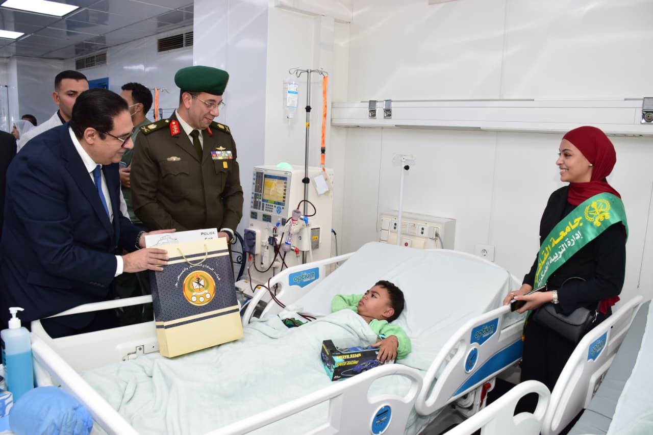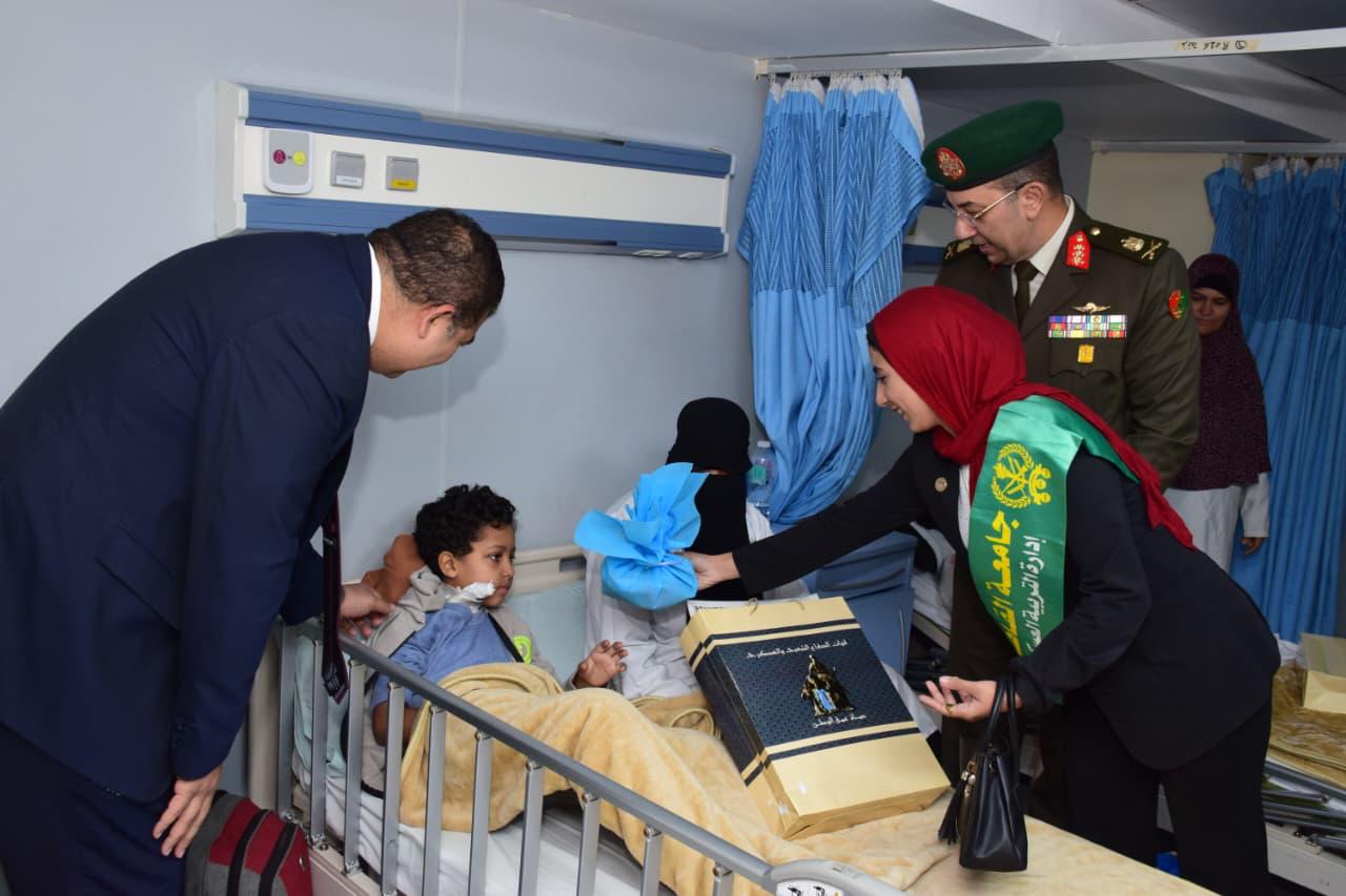 قوات الدفاع الشعبى والعسكرى تنظم زيارة لعدد من طلبة جامعة القاهرة وطلبة مدارس التأسيس العسكرى لمستشفى أبو الريش للأطفال.. صور