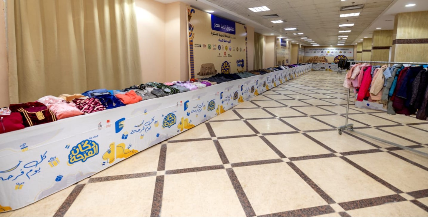كما تم تنظيم معرض بالمجان لتوزيع (115) ألف قطعة ملابس وأدوات منزلية ولعب أطفال , وكذلك توفير الدعم لأبناء الوطن من ذوى الهمم بتوزيع عدد من الكراسى المتحركة ومساعدات الحركة للمكفوفين ، كما تم توزيع (10) آلاف كرتونة من السلع الغذائية .