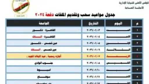 وأشارت النيابة الإدارية، إلى أنه سيتم الإعلان عن المواعيد المخصصة لكل جامعة عبر الموقع الإلكتروني الرسمي.