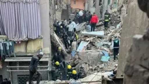 استخراج شخصين مصابين من أسفل ركام عقار إمبابة وارتفاع الإصابات لـ6