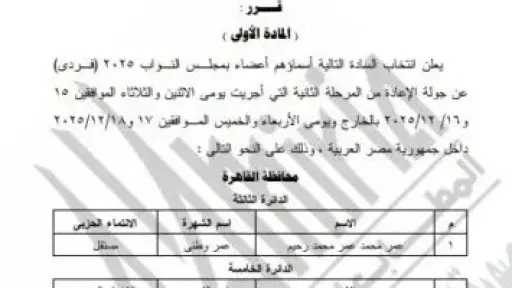 جميع الدائرة الانتخابية بمحافظة قنا تجرى بها إعادة.