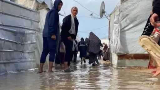 ويواجه الفلسطينيون في قطاع غزة كارثة محققة؛ بسبب المنخفض الجوي الذي يضرب المنطقة وتصل سرعة الرياح فيه إلى 100 كلم في الساعة، مصحوبة بأمطار غزيرة، مع توقعات بتجمع مياه الأمطار في برك بسبب الطبيعة الطينية الناجمة عن الدمار الهائل الذي خلفه الاحتلال خلال العدوان الذي استمر على مدى العامين الماضيين.