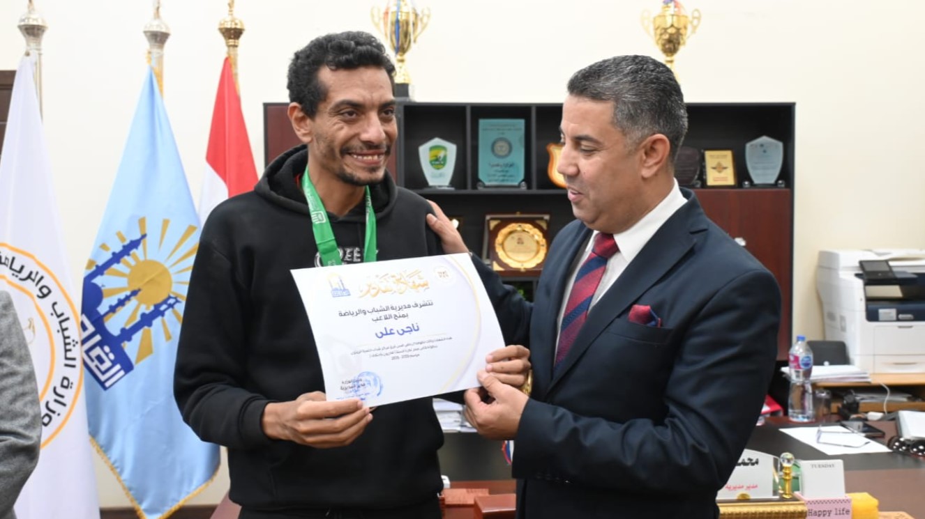 وفي ختام اللقاء، قام مدير المديرية بتسليم شهادات التقدير للأبطال والأجهزة الفنية والإدارية والمتطوعين، تقديرًا لجهودهم وإنجازاتهم المشرفة، مؤكدًا استمرار دعم المديرية لرياضة ذوي الهمم باعتبارهم جزءًا أصيلًا من مسيرة التنمية الرياضية في مصر في ضوء استراتيجيه وزارة الشباب والرياضة
