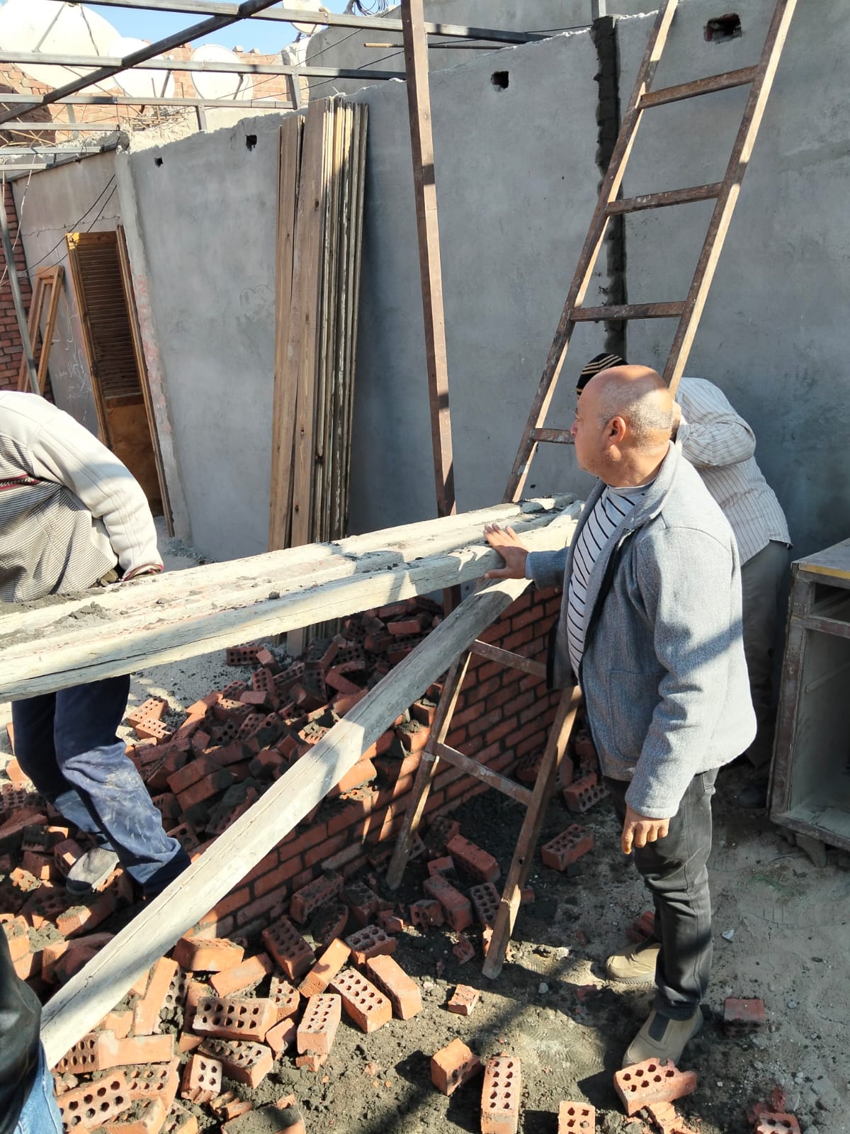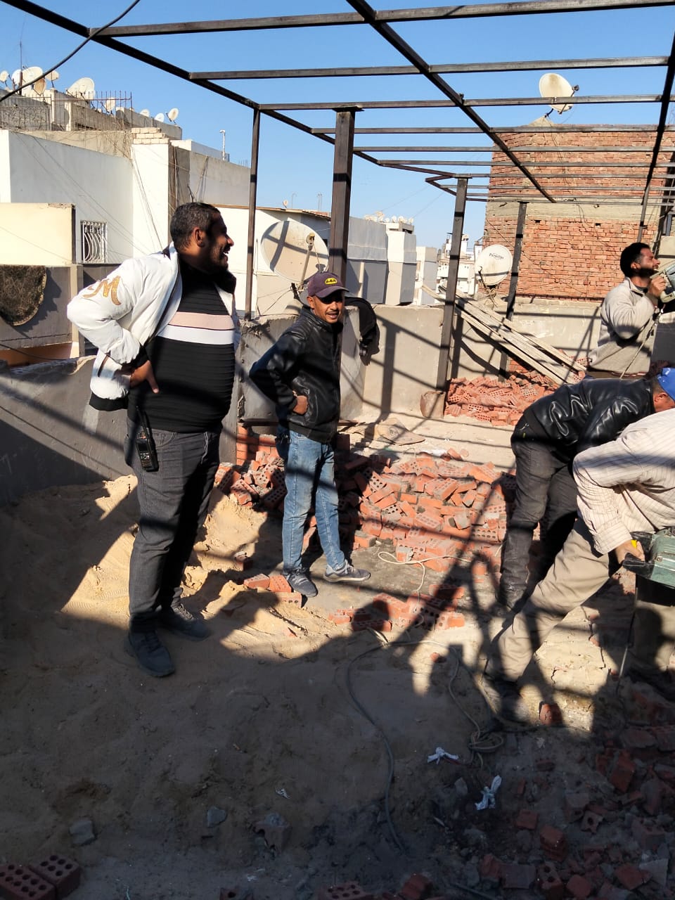 وفريق قسم الاشغالات بقياده الاستاذ احمد فكرى مدير قسم الاشغالات والاستاذ مصطفى الشب وتوجهوا إلي مكان البلاغ وعلي الفور تم الازاله للاعمال المخالفه ومصادرة المعدات المستخدمة للبناء وإتخاذ الاجراءات القانونية ..