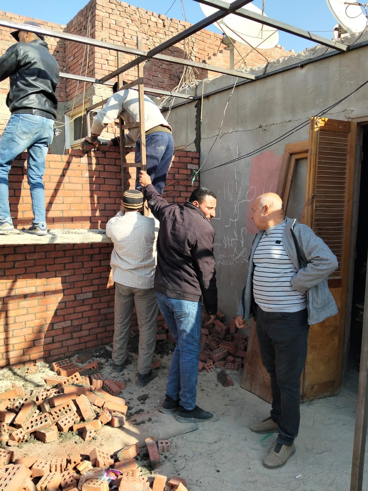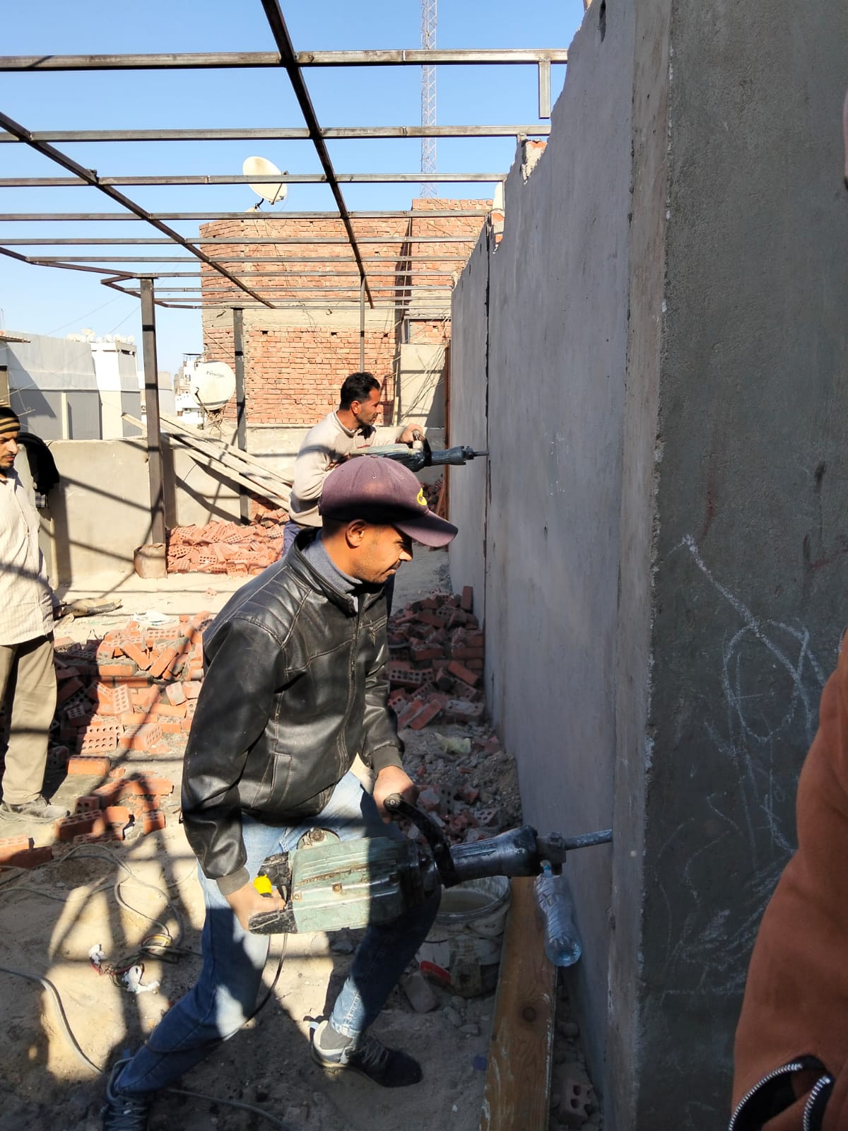 بعد الاستجابه السريعه قام الاستاذ ابو العيون ابراهيم رئيس حي شرق بازاله البناء المخالف ببرج نور الاسلام بابراج القضاء
