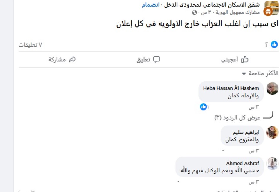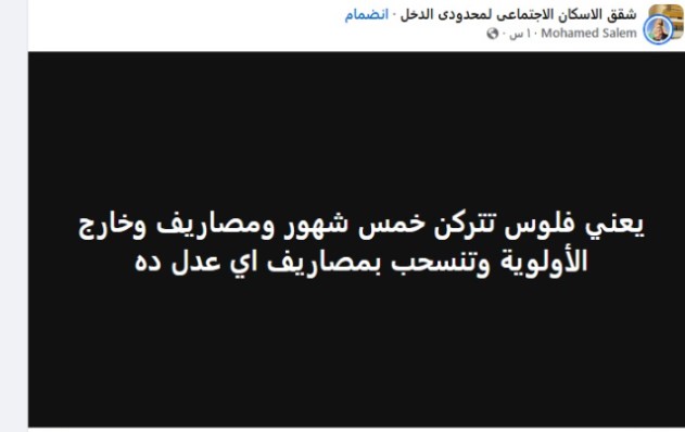 وأكدوا أنهم لا يطالبون باستثناءات أو تجاوز للقانون، وإنما بتنفيذ الوعود المعلنة، وتطبيق معايير عادلة وشفافة، خاصة أن مشروع الإسكان الاجتماعي أُطلق بالأساس لدعم الفئات الأكثر احتياجًا.