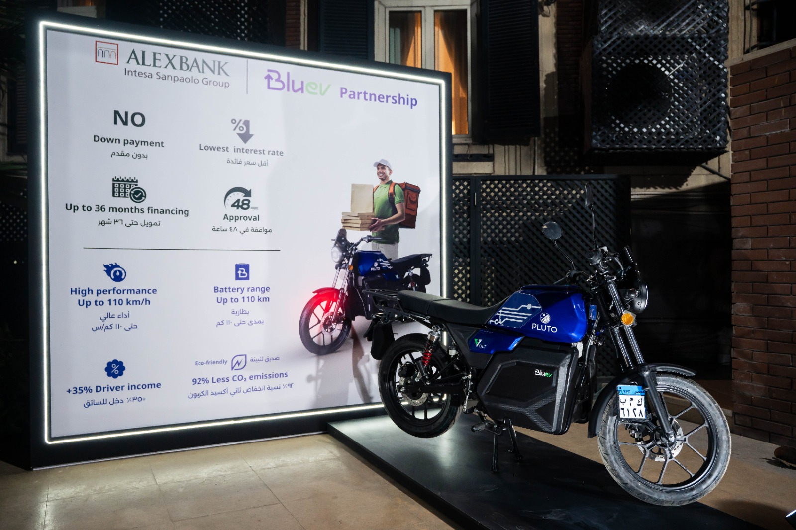 تهدف هذه الشراكة إلى المساهمة في خلق فرص عمل ودعم الاقتصاد الأخضر من خلال تمويل الدراجات الكهربائية وتعزيز إتاحة حلول التنقل المستدام. وفي هذا الإطار، يقدّم بنك الإسكندرية حلًا تمويليًا مبتكرًا ومبسّطًا للعملاء ذوي الأنشطة الاقتصادية متناهية الصغر، بما يُمكّنهم من اقتناء الدراجات الكهربائية الموفّرة من شركة بلو إي ڤي مباشرةً ومن خلال موزّعيها المعتمدين. ويتميّز البرنامج التمويلي بإتاحة فترات سداد مرنة تصل إلى 36 شهرًا، بدون دفعة مقدّمة، وبأسعار عائد تنافسية، مع إجراءات موافقة سريعة خلال 48 ساعة.