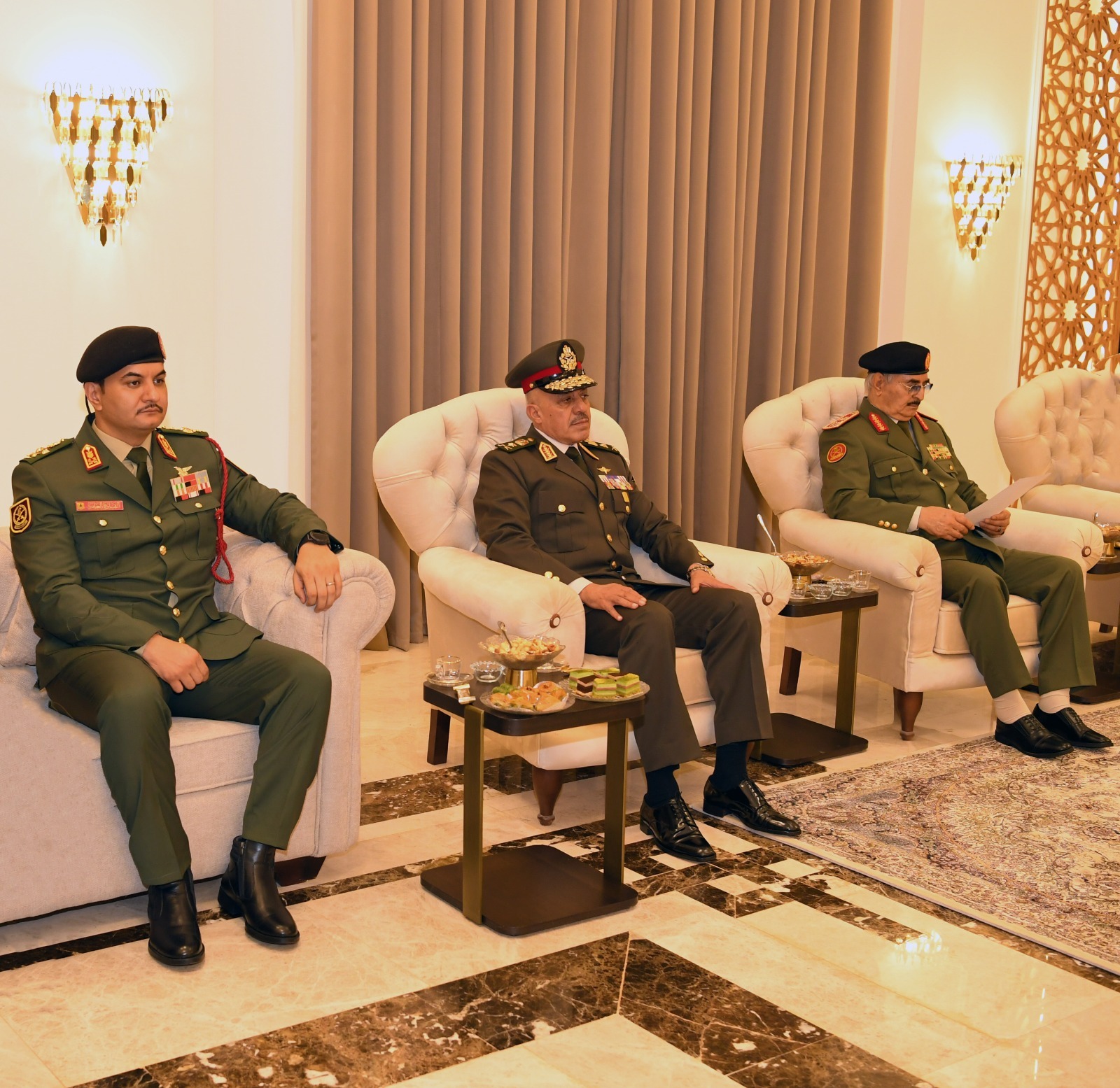 وعلى هامش فعاليات المؤتمر إلتقى المشير خليفة حفتر القائد العام للقوات المسلحة العربية الليبية والفريق أول ركن صدام حفتر نائب القائد العام للقوات المسلحة العربية الليبية بالفريق أحمد خليفة
