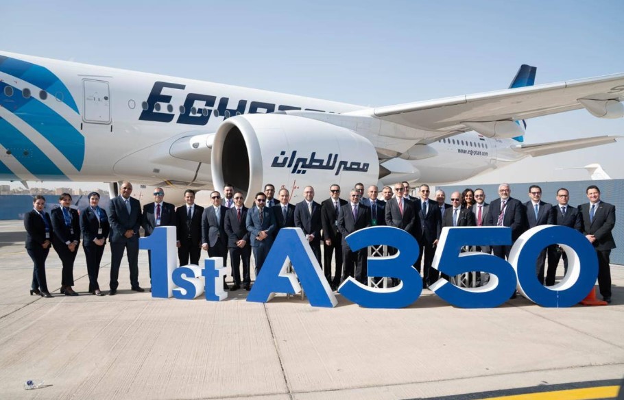بحضور الدكتور مصطفى مدبولي رئيس مجلس الوزراء، نظمت وزارة الطيران المدني مُمثلة في الشركة الوطنية مصر للطيران، احتفالية بمناسبة انضمام أول طائرة من طراز الإيرباص A350-900 إلى أسطول الناقل الوطني، هذا وقد حضر الاحتفال، السفير إيريك شوفالييه، السفير الفرنسي بالقاهرة، وممثلو سفارات بريطانيا وألمانيا وإسبانيا بالقاهرة، وجابرييل سيميلس رئيس شركة إيرباص لمنطقة أفريقيا والشرق الأوسط، وجورج أبو النصر، الرئيس التنفيذي لخدمة العملاء بشركة رولز رويس، وعدد من رؤساء وأعضاء نواب مجلسي النواب والشيوخ، وشركاء الصناعة من ممثلي كبرى الشركات العالمية المتخصصة في مجال النقل الجوي، من بينها رولز رويس، وكولينز، وصفران، وباناسونيك ولفيف من قيادات الطيران المدني.