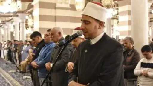 وقد رُفع أذان العشاء بصوت الشيخ محمد علاء الدين، ثم أمَّ المصلين في صلاة العشاء الشيخ رضا السويفي، قارئًا برواية الإمام حفص عن الإمام عاصم، من سورة آل عمران.