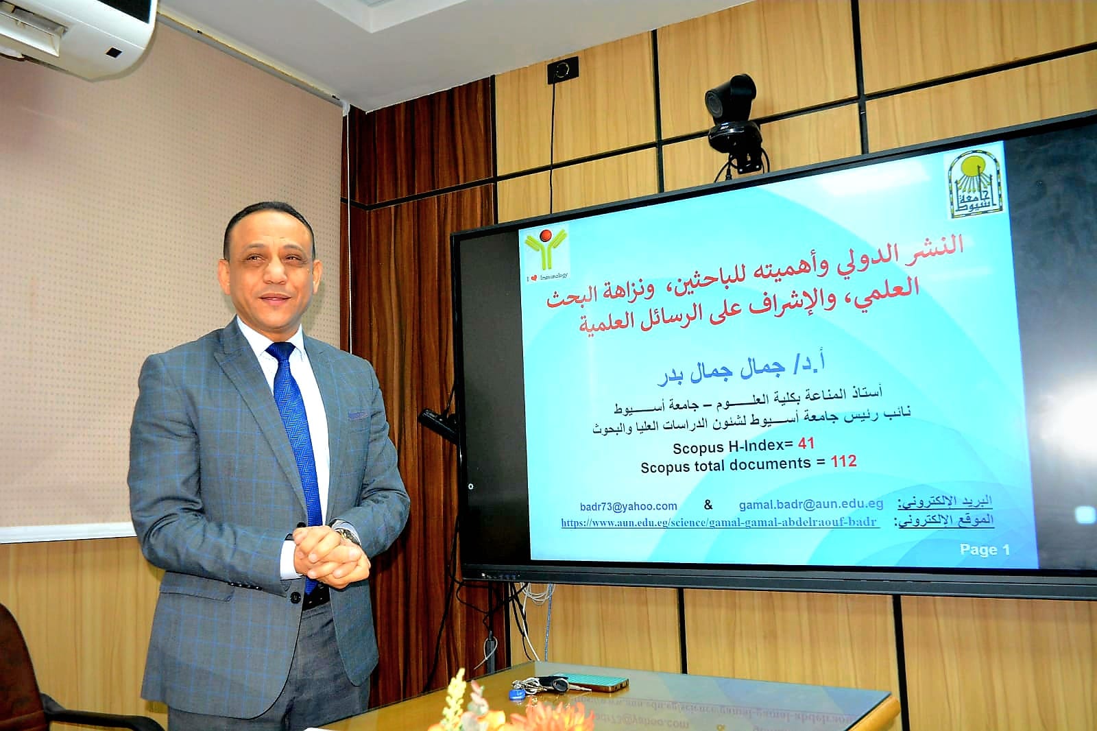 كما تطرق الدكتور جمال بدر، إلى مفهوم مؤشر الـ h-Index ودوره في قياس الإنتاج العلمي للباحثين، موضحًا أسس الإدارة الفعّالة للبحث العلمي التي تعتمد على التخطيط الجيد والمرونة في التعامل وتطوير القدرات البحثية.