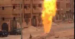 كسر ماسورة مياه كبيرة أمام مدخل مدينة زويل بالجيزة