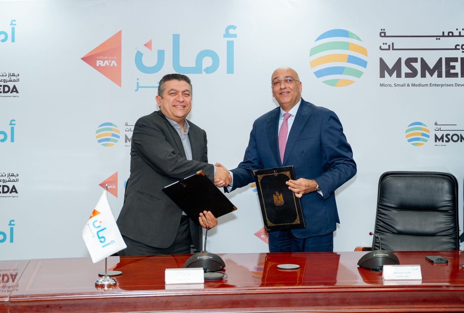 قام بتوقيع العقد باسل رحمي الرئيس التنفيذي لجهاز تنمية المشروعات والمهندس حازم مغازي، الرئيس التنفيذي المشارك لقطاع الأعمال والشؤون التجارية في شركة أمان القابضة، والأستاذ أيمن بسيوني، رئيس القطاع المالي بالشركة، وذلك بحضور محمد مدحت، نائب الرئيس التنفيذي للجهاز، ومحمد أسامة، رئيس القطاع المركزي لتمويل المشروعات المتوسطة والصغيرة بالجهاز ولفيف من المسئولين بالجهاز و الشركة.