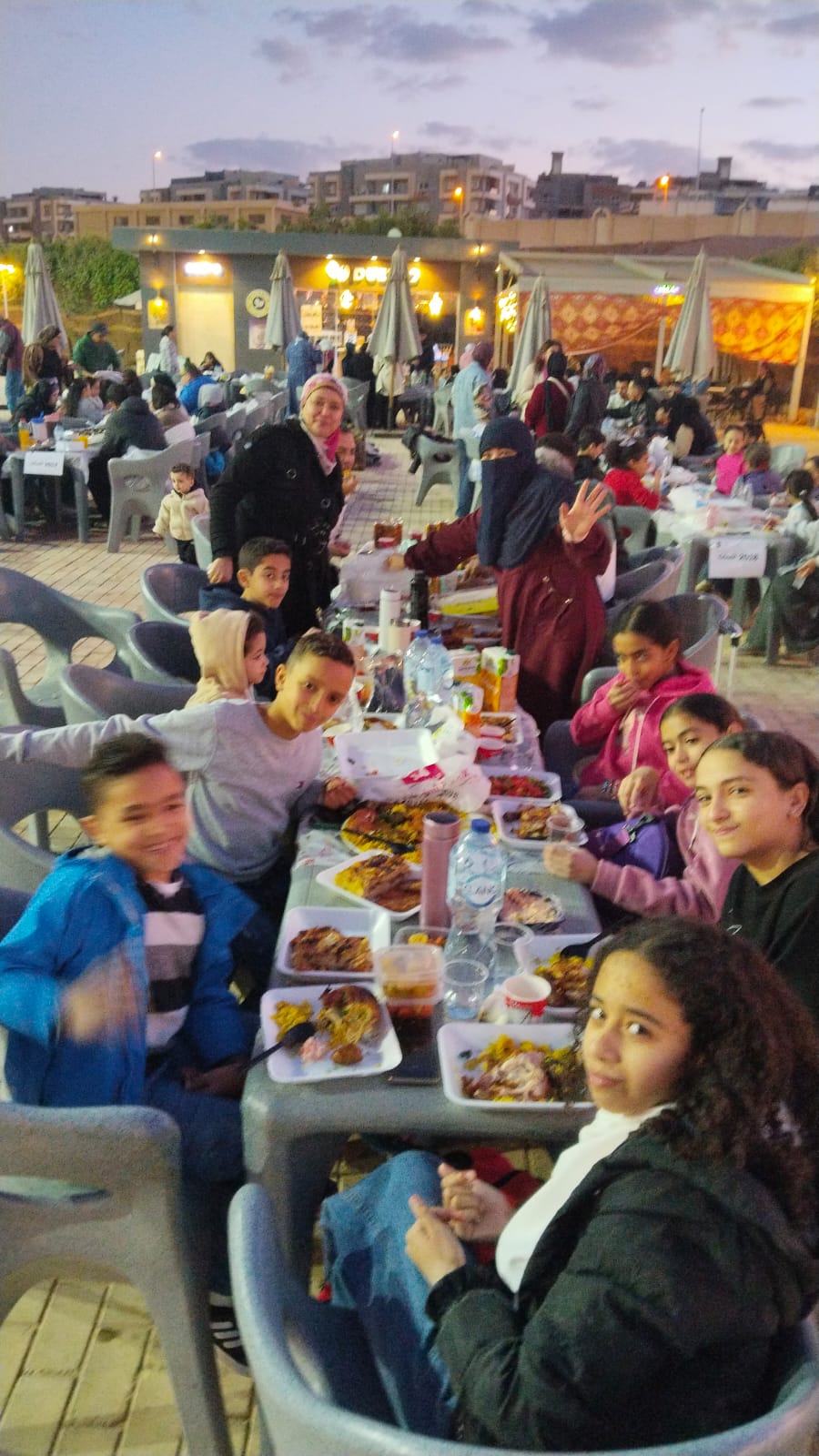 ومع اقتراب موعد الإفطار، بدا المشهد أشبه بعائلة كبيرة تجتمع حول مائدة واحدة، حيث حرص أولياء الأمور على المشاركة بأصناف متعددة من الطعام، تنوعت بين الأكلات المنزلية الشهية والحلويات الرمضانية التي أضفت على المائدة طابعًا خاصًا من الدفء والكرم.