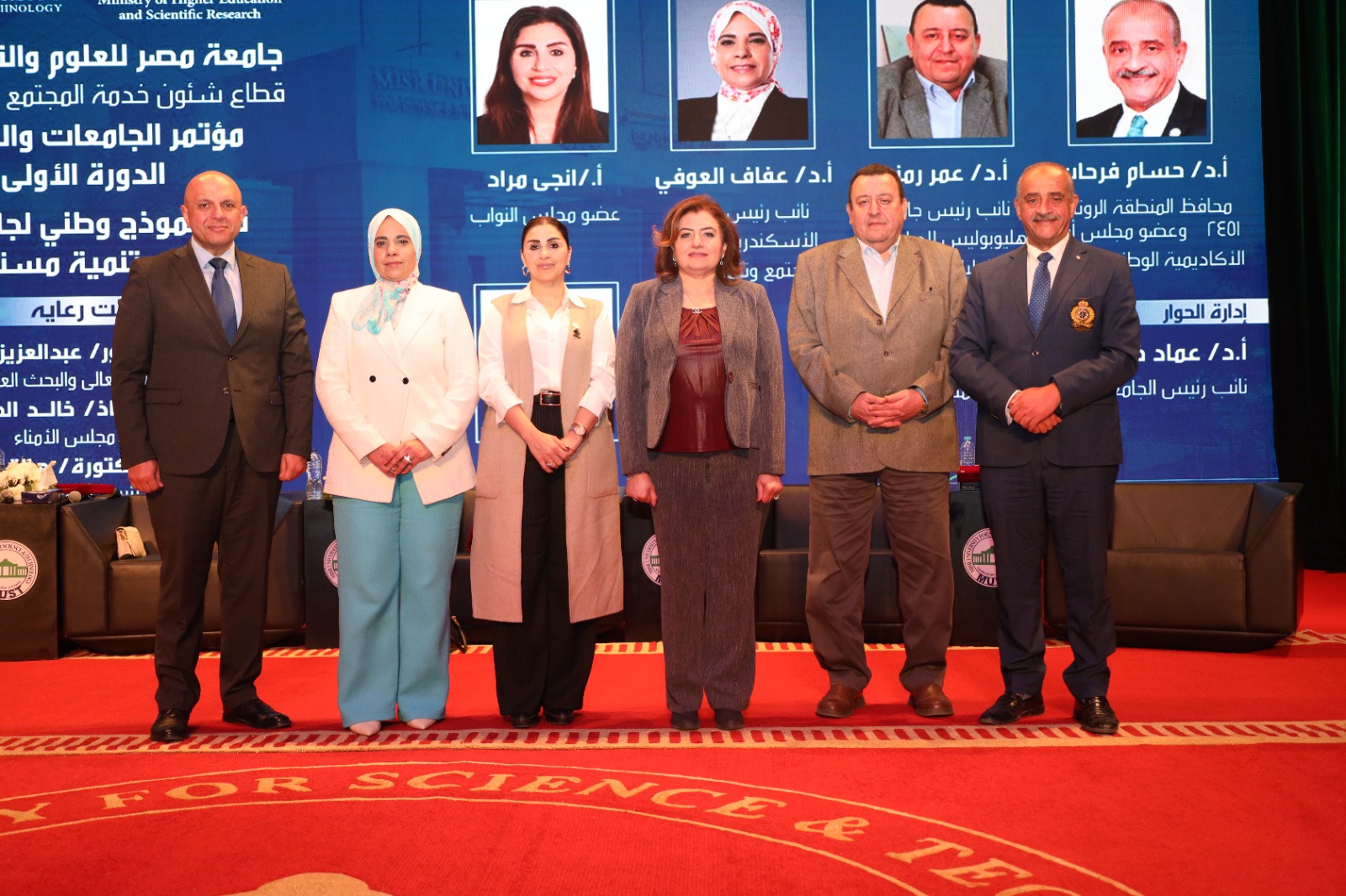 في إطار التوجهات الوطنية الهادفة إلى تحقيق التنمية المستدامة وتعزيز دور مؤسسات التعليم العالي في خدمة المجتمع، نظمت جامعة مصر للعلوم والتكنولوجيا فعاليات الدورة الأولى من مؤتمر «الجامعات والمجتمع» تحت شعار «نحو نموذج وطني لجامعات فاعلة وتنمية مستدامة»، برعاية وزير التعليم العالي والبحث العلمي، وخالد الطوخي رئيس مجلس أمناء جامعة مصر للعلوم والتكنولوجيا، الذي يحرص على تعزيز دور الجامعة في خدمة المجتمع وربط مخرجات التعليم والبحث العلمي باحتياجات التنمية الوطنية، كما يحرص على توجيه الجامعة بالاستمرار فى دعم المبادرات والمشاريع التي تعظم أثرها المجتمعي وتساهم في بناء قدرات الشباب وتأهيلهم لسوق العمل.