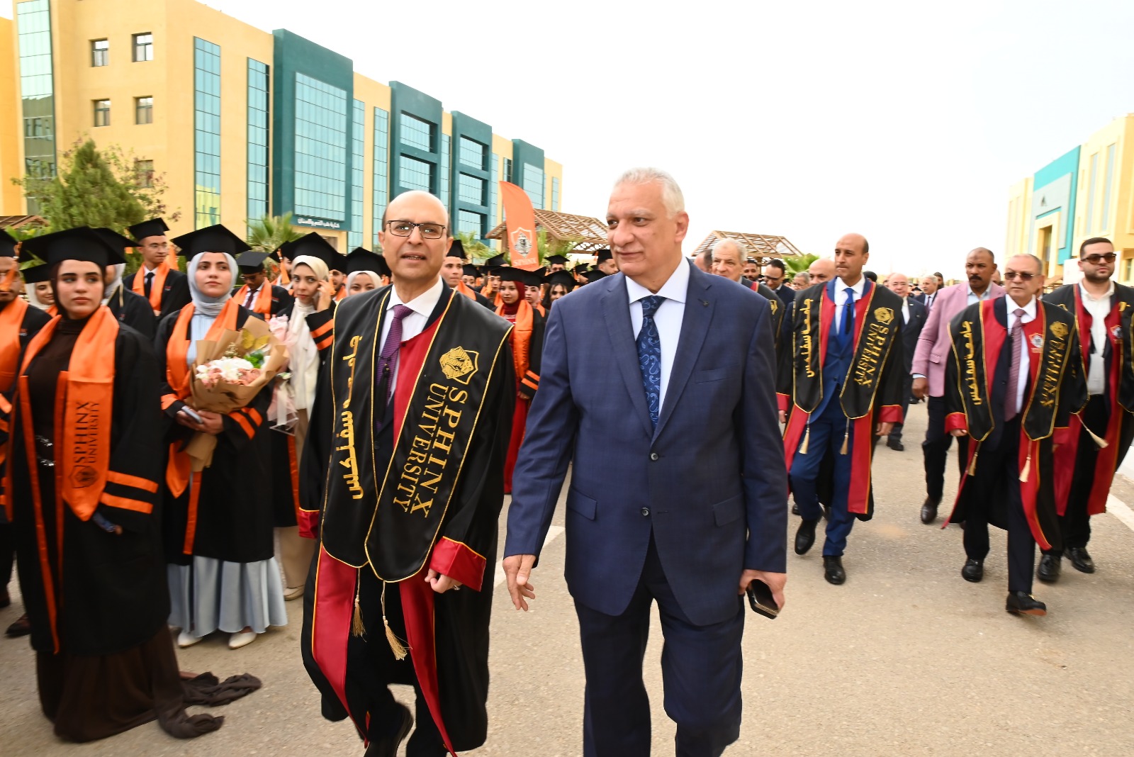 وجاءت الاحتفالية بحضور اللواء محمد علوان محافظ أسيوط، والمهندس إبراهيم محلب رئيس مجلس الوزراء الأسبق وعضو مجلس أمناء جامعة سفنكس، والدكتور محمد ربيع ناصر مؤسس جامعة سفنكس ورئيس مجلس أمناء جامعة الدلتا للعلوم والتكنولوجيا، والمهندس أسامة محمد ربيع رئيس مجلس أمناء الجامعة، والدكتور محمد محمد ربيع نائب رئيس مجلس أمناء الجامعة، والدكتور منصور محمد كباش رئيس الجامعة، والدكتور محمود شيحة نائب رئيس الجامعة.