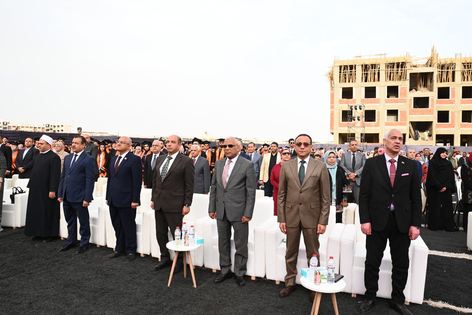 وشهد الحفل حضور وفد من جامعة أسيوط، ضم الدكتور أحمد عبدالمولى نائب رئيس الجامعة لشئون التعليم والطلاب، والدكتور جمال بدر نائب رئيس الجامعة لشئون الدراسات العليا والبحوث، والدكتور محمد عدوي نائب رئيس الجامعة لشئون خدمة المجتمع وتنمية البيئة، والدكتور نوبي محمد حسن نائب رئيس جامعة أسيوط الأهلية للشئون الأكاديمية، إلى جانب الدكتور مينا عماد نائب محافظ أسيوط، ولفيف من رؤساء الجامعات ونوابهم، وعمداء الكليات، وأعضاء هيئة التدريس، ورجال الدين الإسلامي والمسيحي، وأولياء الأمور، وحشد من طلاب الجامعة.
