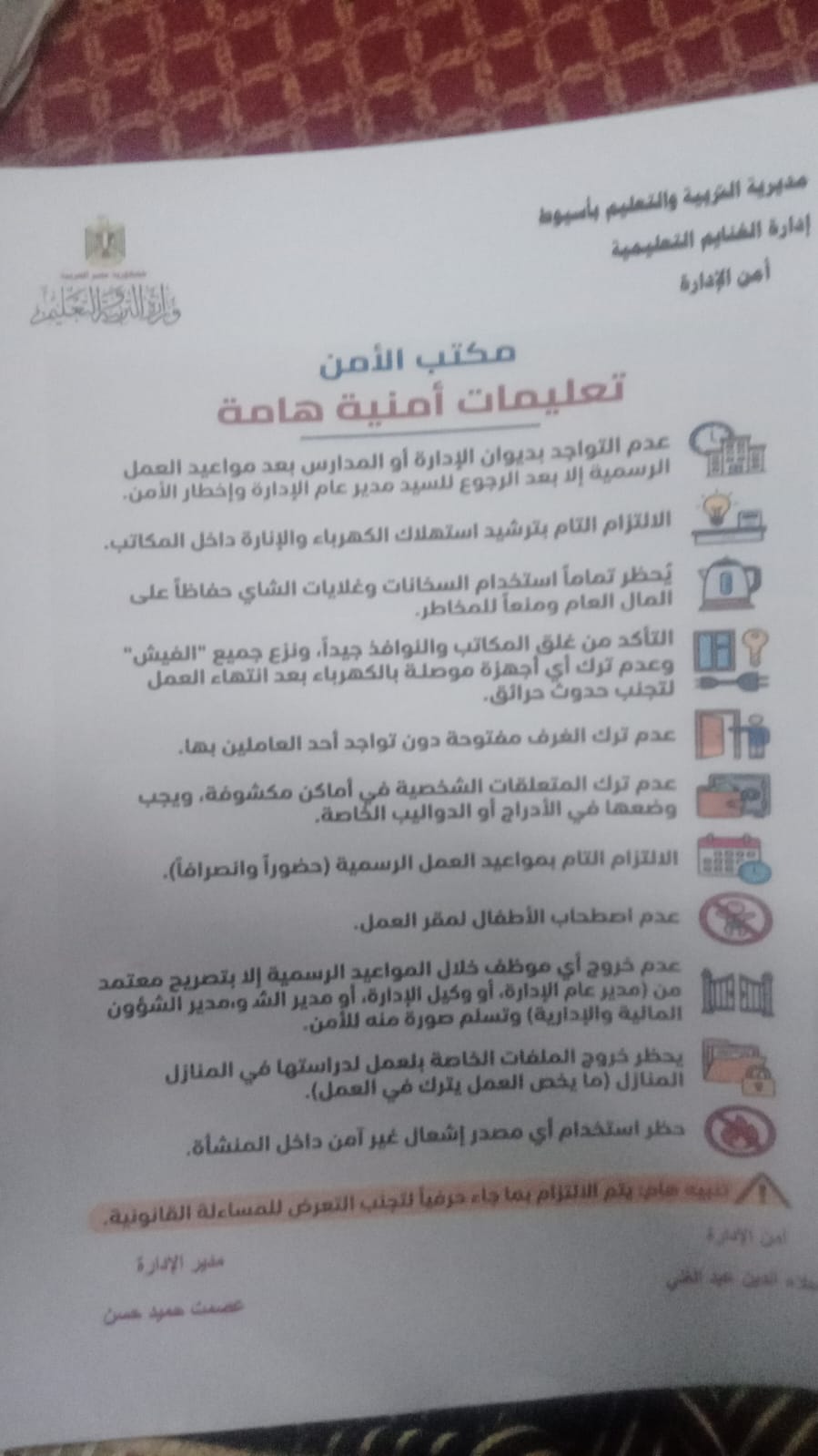 مدير تعليم أسيوط يؤكد استمرار تنفيذ خطة ترشيد الكهرباء وجولات صباحية ومسائية