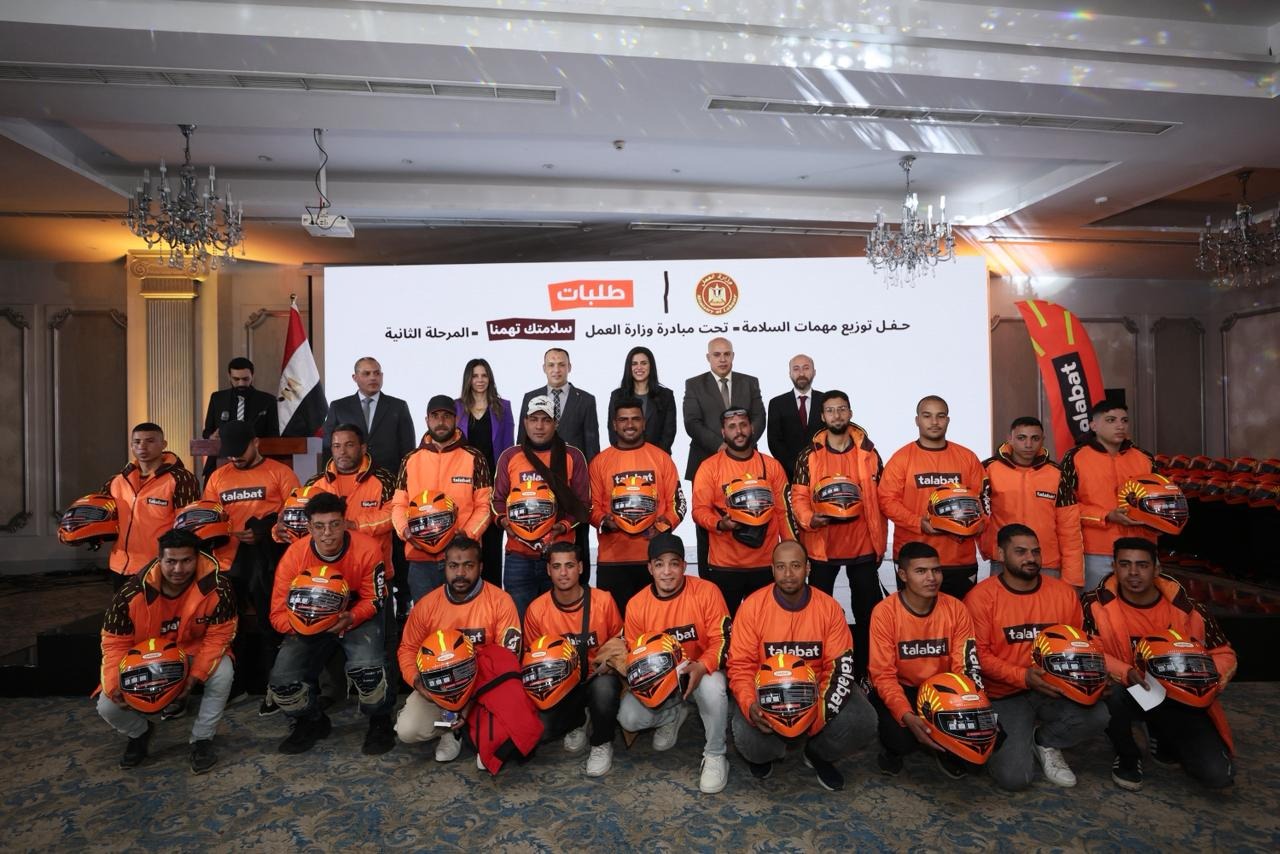 أطلقت وزارة العمل، بالتعاون مع شركة "طلبات مصر"، المنصة التكنولوجية الرائدة في مجال التجارة الإلكترونية في الشرق الأوسط وشمال إفريقيا، مراسم تدشين المرحلة الثانية من توزيع معدات الحماية والسلامة المهنية "خوذ" على سائقي التوصيل، وذلك في إطار حملة "سلامتك تهمنا"، بمشاركة شركاء طلبات اللوجستيين، في خطوة تعكس توجيهات فخامة الرئيس عبد الفتاح السيسي بتوفير الحماية اللازمة للعمالة غير المنتظمة. وقد أُقيمت الفعالية بحضور عدد من قيادات الوزارة، وعلى رأسهم المهندس محمد منتصر رئيس الإدارة المركزية للسلامة والصحة المهنية، والمهندس محمود أبو بيه مدير عام الإدارة العامة لتأمين بيئة العمل، و سيد الشرقاوي مدير عام تفتيش العمل ومدير مديرية العمل بالقاهرة